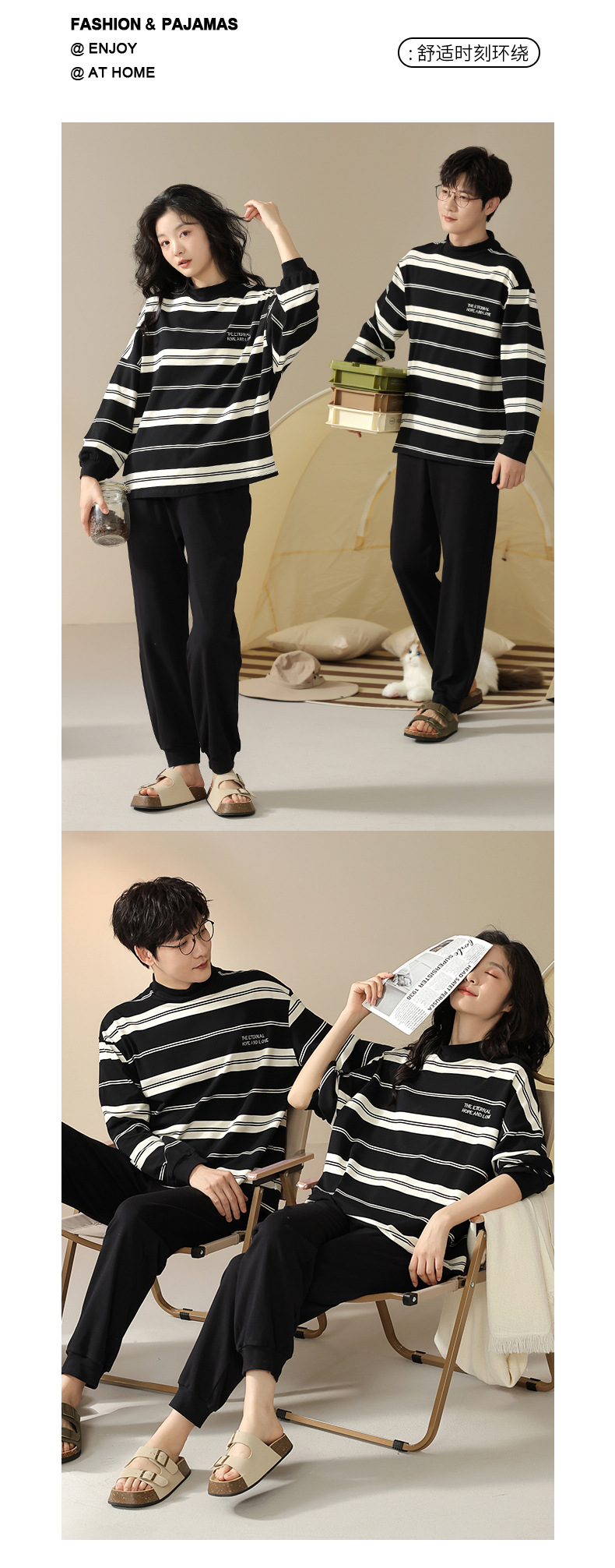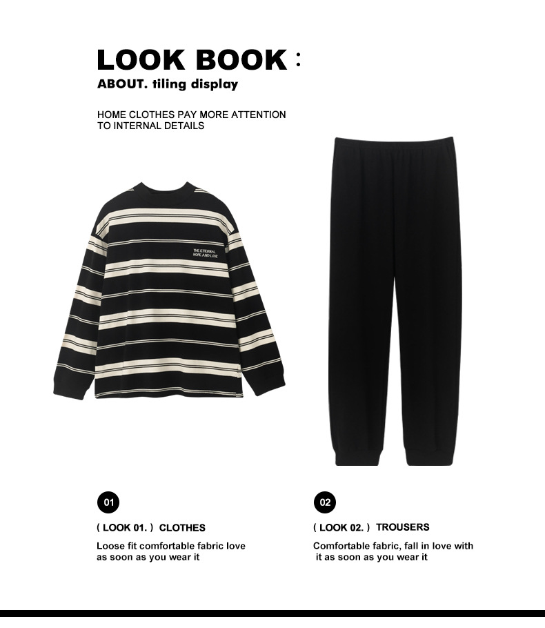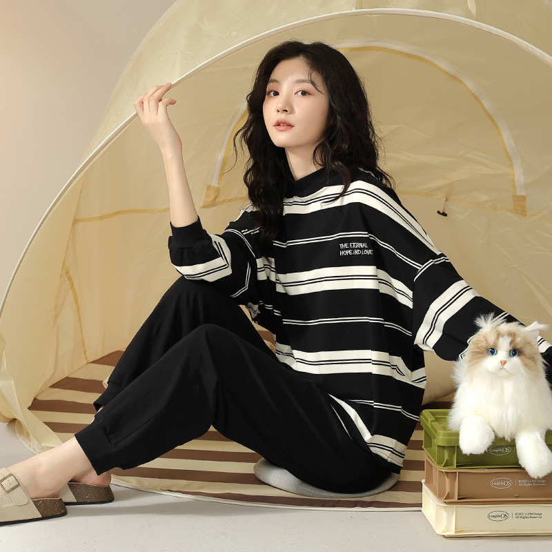 5A 가을 순수 코튼 커플 잠옷 여성 긴 소매 스트라이프 터틀넥 캐주얼 웨어러블 남성 홈웨어 세트스토어 가기