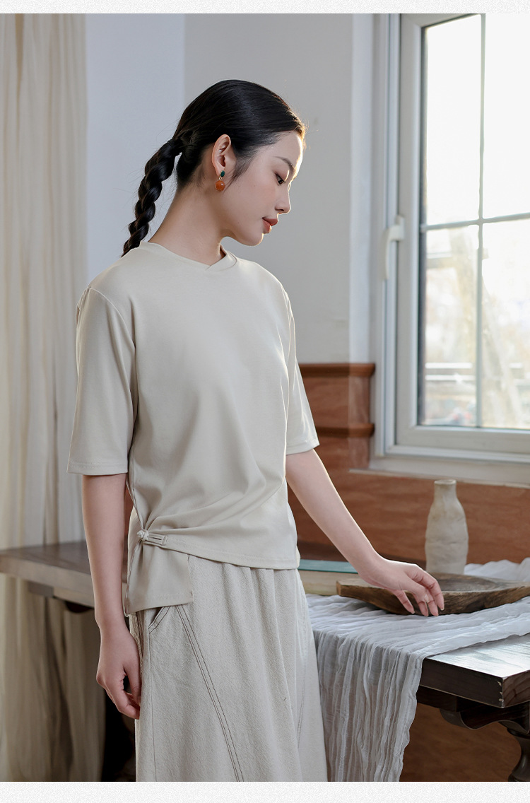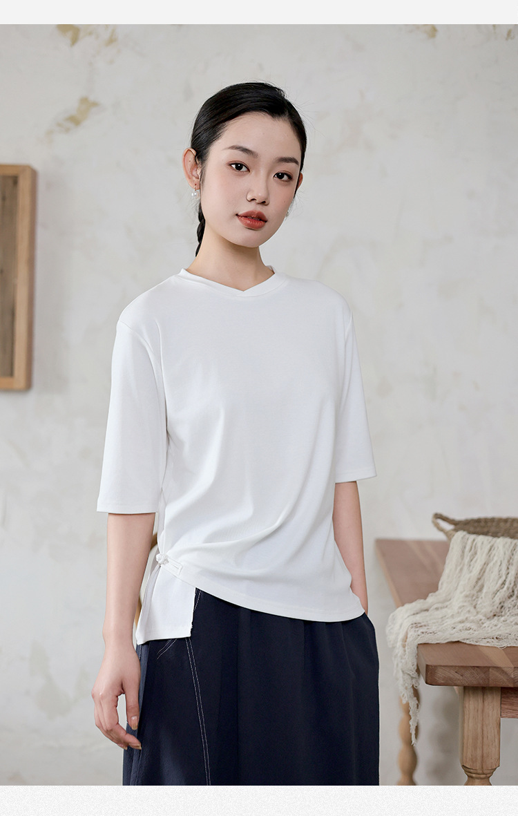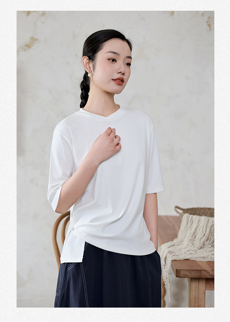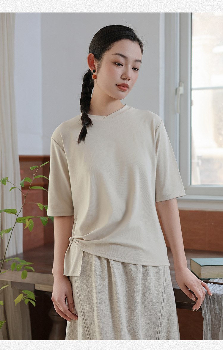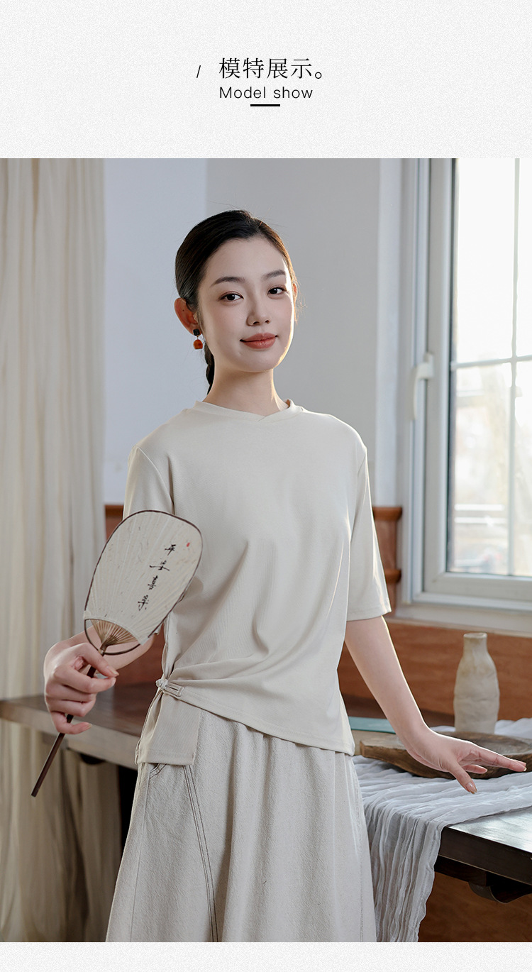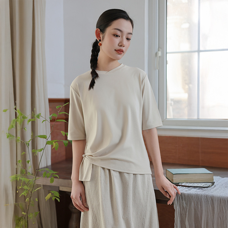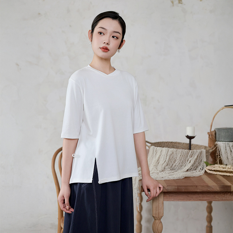 여성 여름 신작 반팔 티셔츠, 여성 디자인, 다용도 바닥 셔츠, 새로운 중국 스타일 슬릿 탑 도매스토어 가기