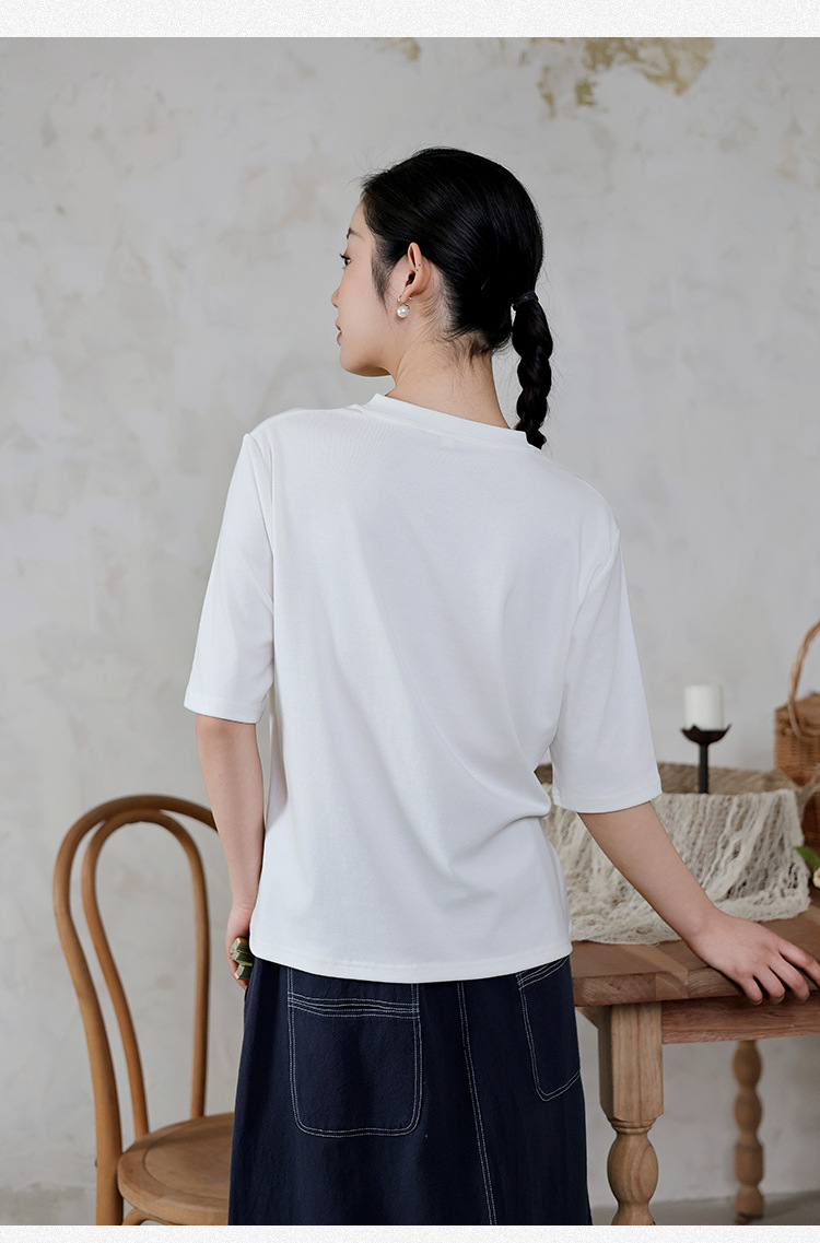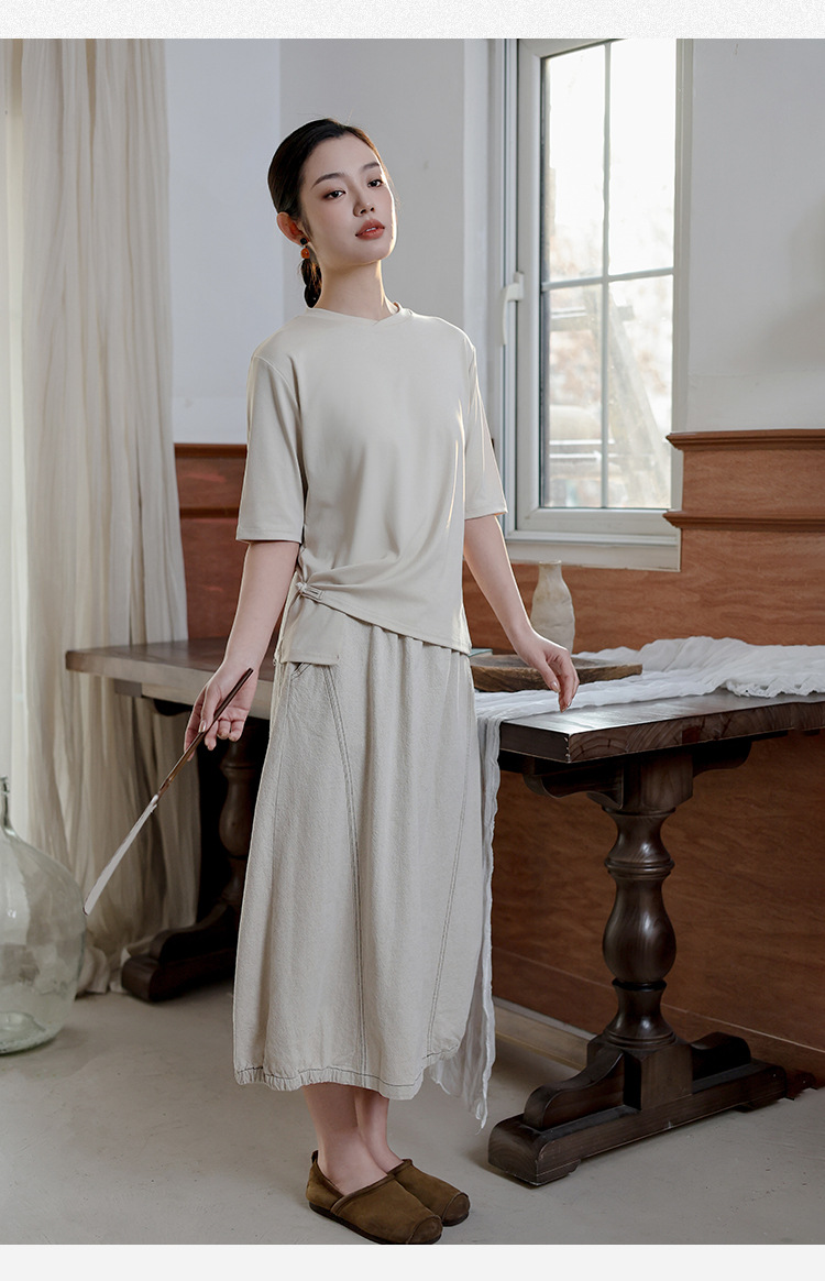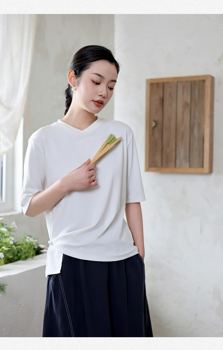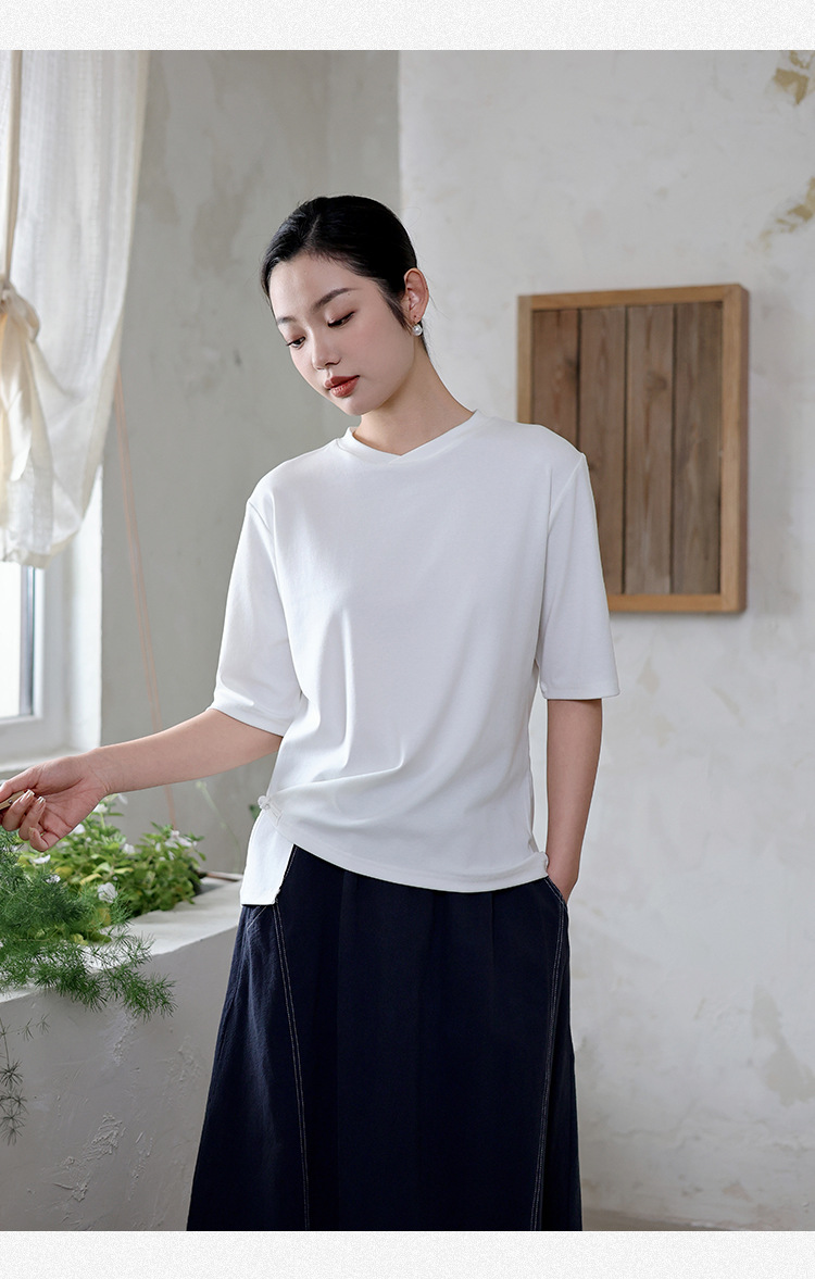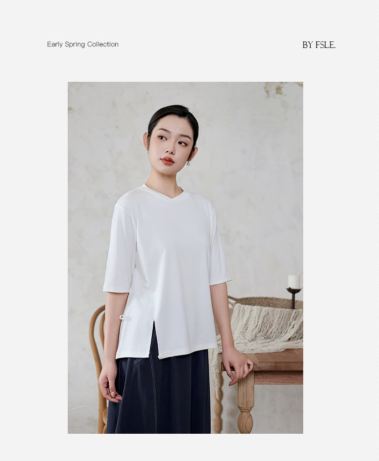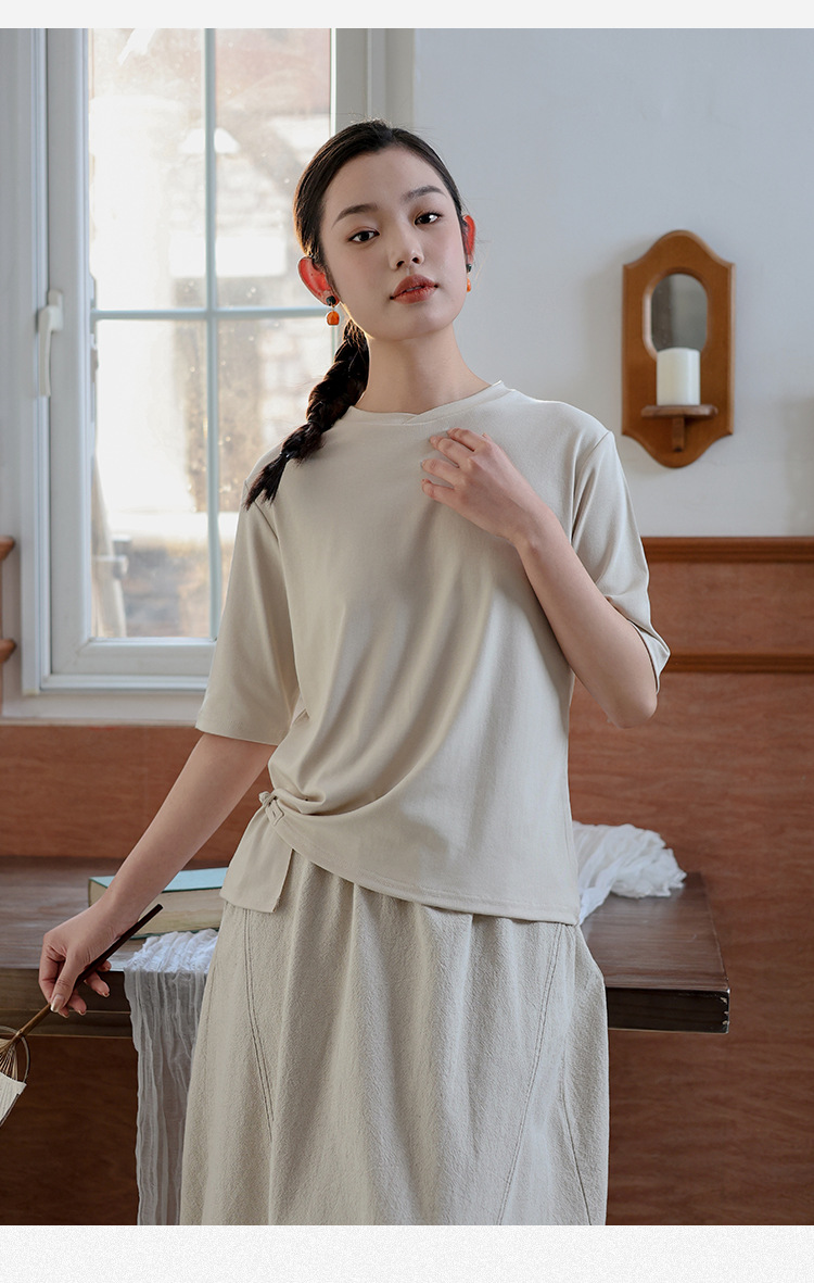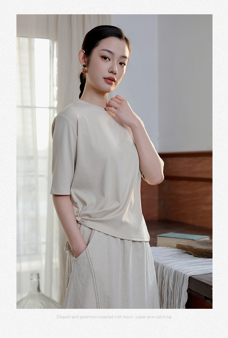 여성 여름 신작 반팔 티셔츠, 여성 디자인, 다용도 바닥 셔츠, 새로운 중국 스타일 슬릿 탑 도매스토어 가기