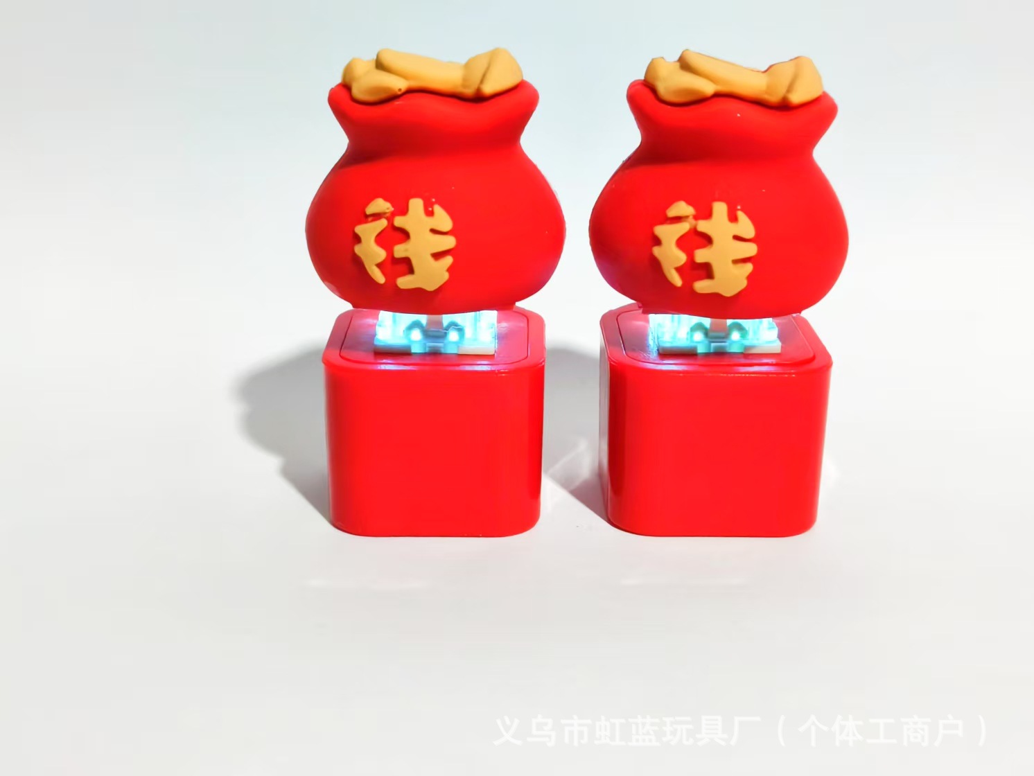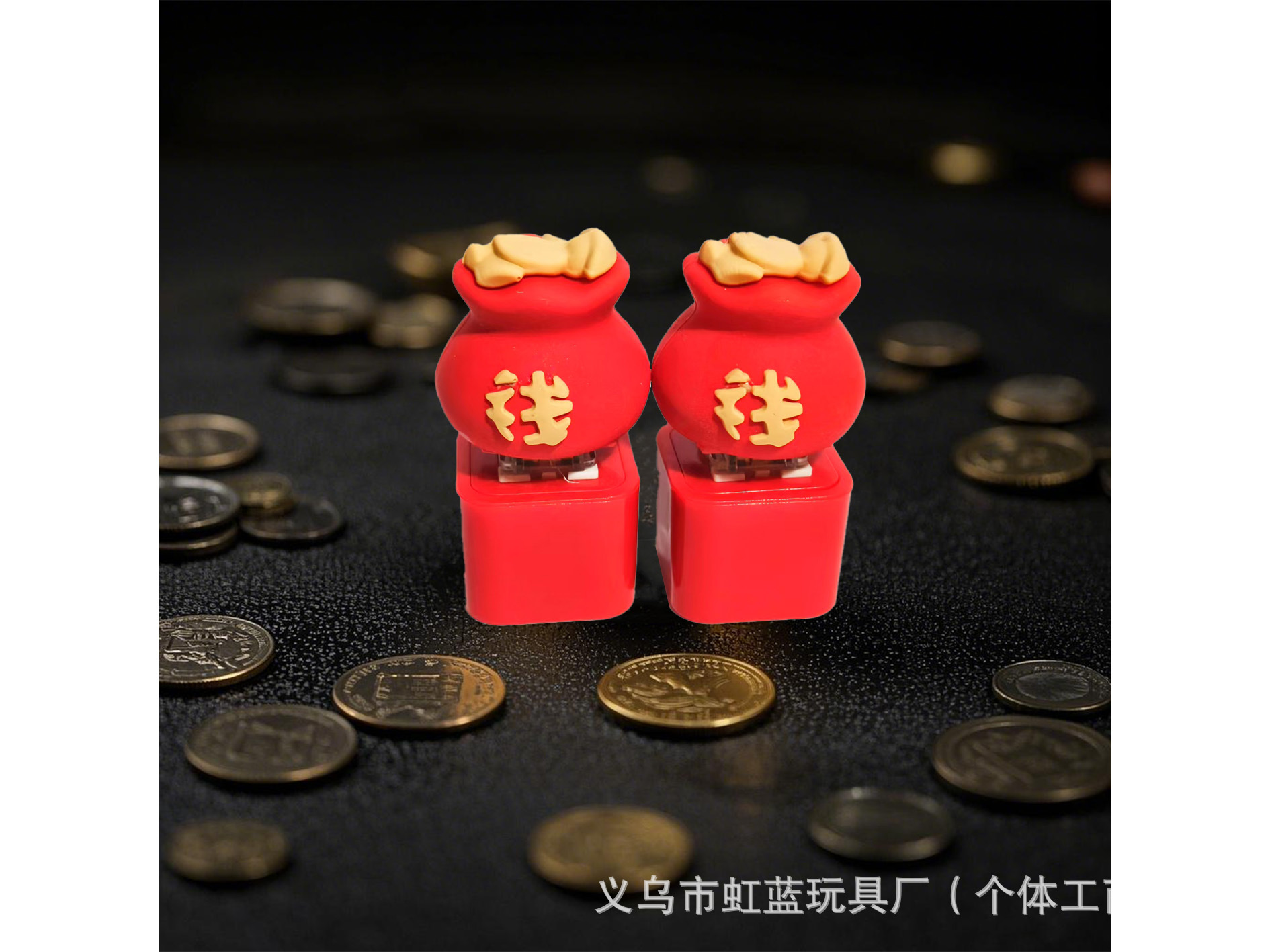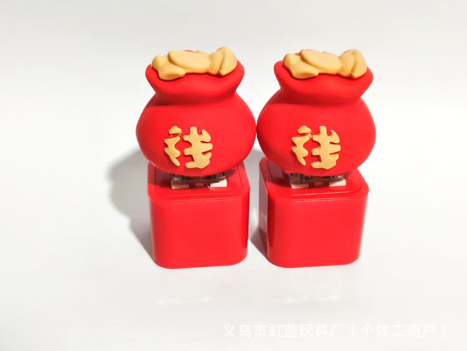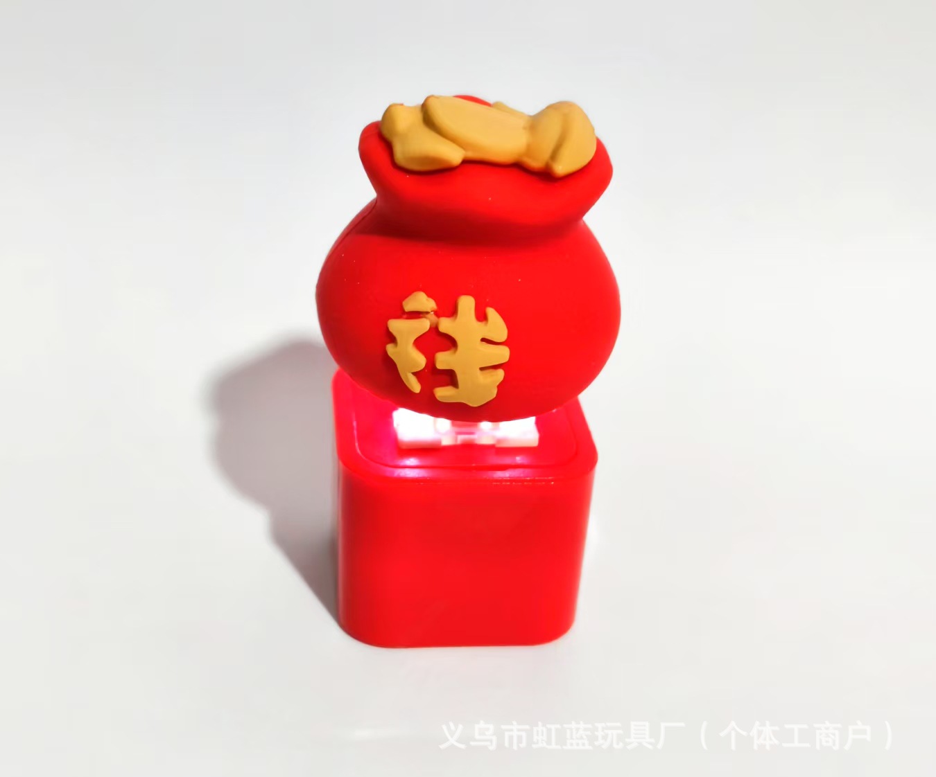 支付宝到账福袋按键钥匙扣是一款结合 **支付宝到账语音提示 和 趣味互动设计的创意周边产品。外观设计灵感源自支付宝“到账提醒”的经典元素,融入“福袋”造型(象征财运和祝福),搭配按键触发语音功能,既有实用价值又具备趣味性,适合作为商家促销赠品、品牌周边或个人随身小物。