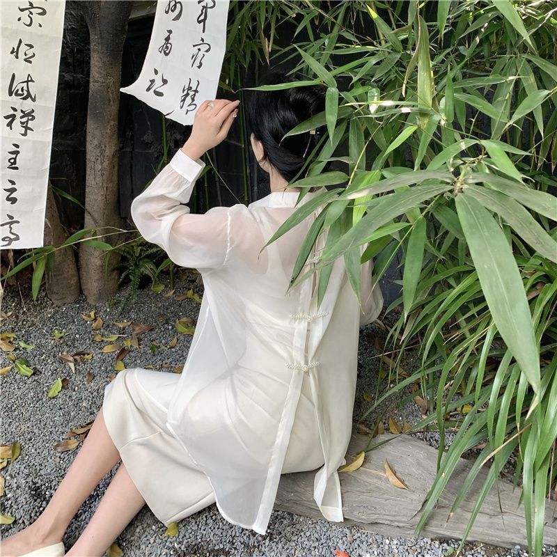 새로운 중국 스타일 국가 스타일 태양 보호 셔츠 재킷 여성의 얇은 긴팔 카디건 2024 새로운 스타일 외부 쉬폰 탑 우아한스토어 가기