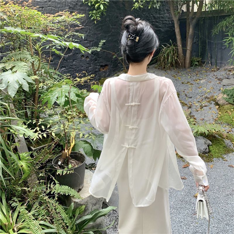 새로운 중국 스타일 국가 스타일 태양 보호 셔츠 재킷 여성의 얇은 긴팔 카디건 2024 새로운 스타일 외부 쉬폰 탑 우아한
