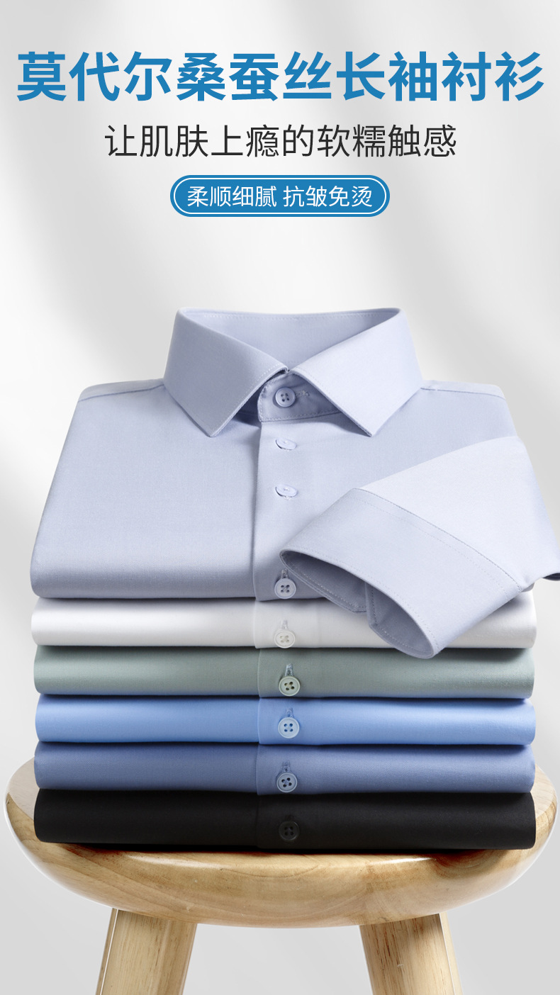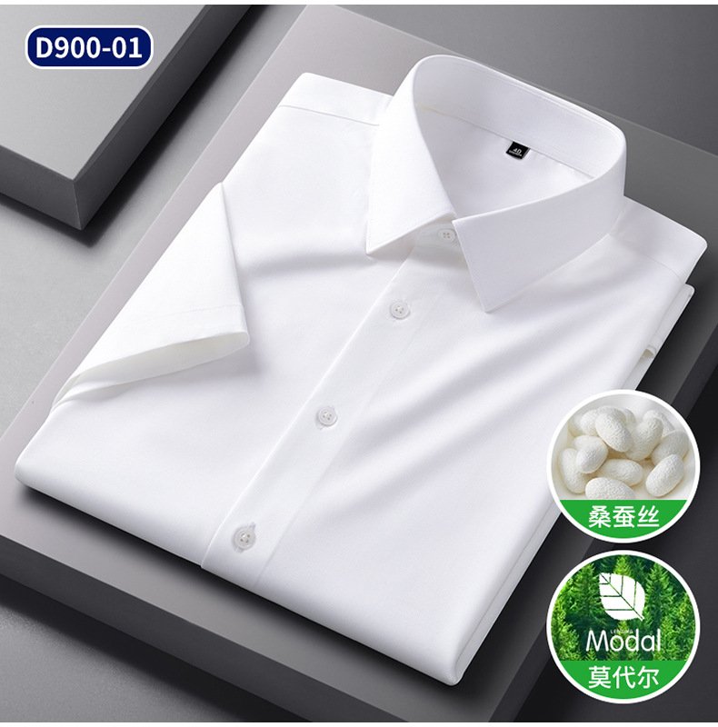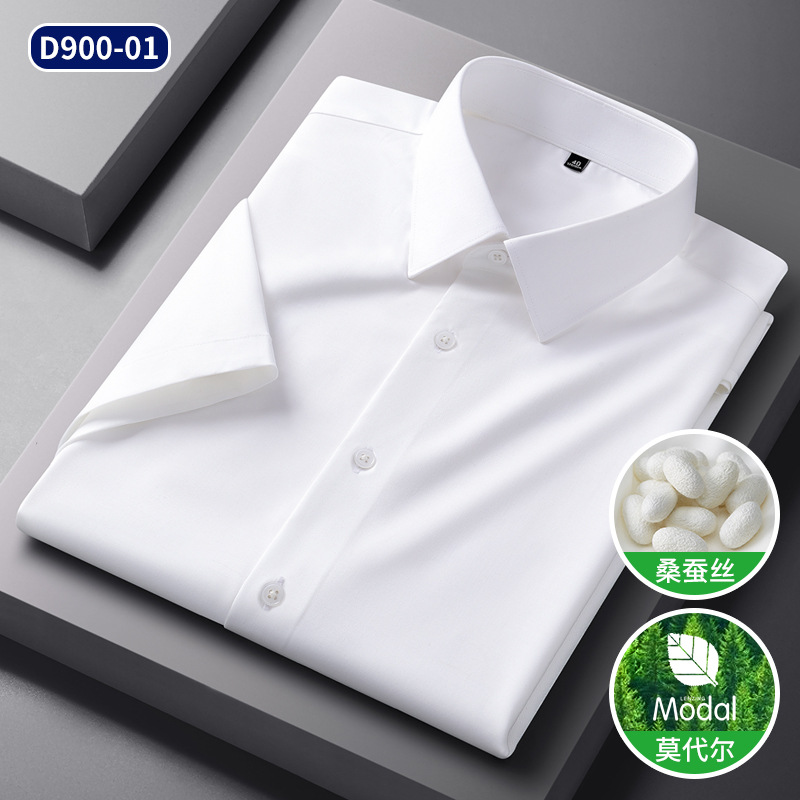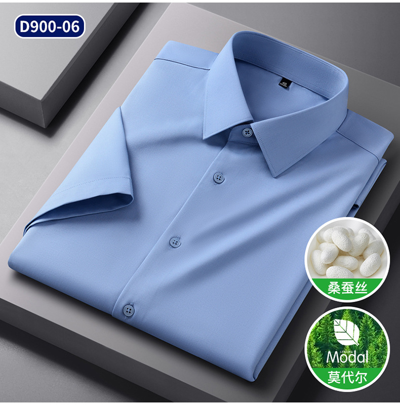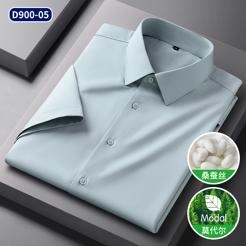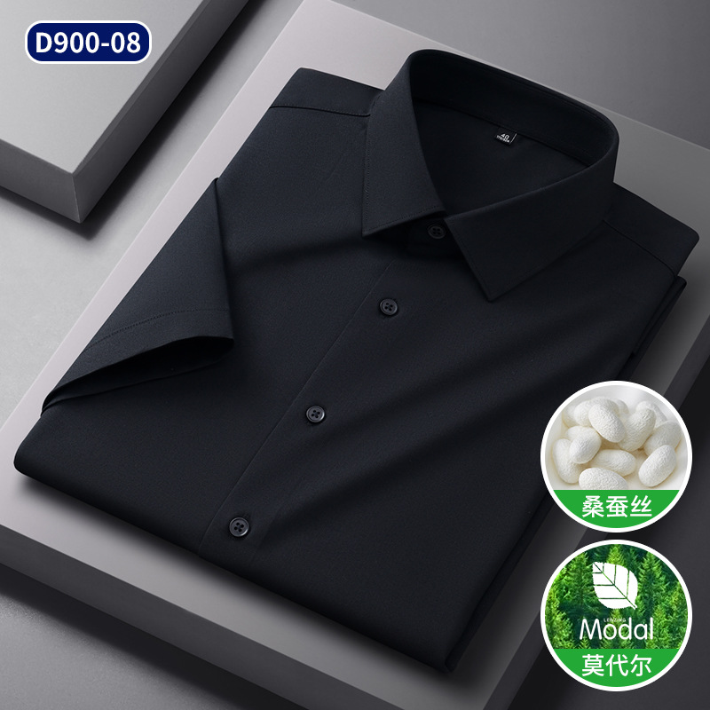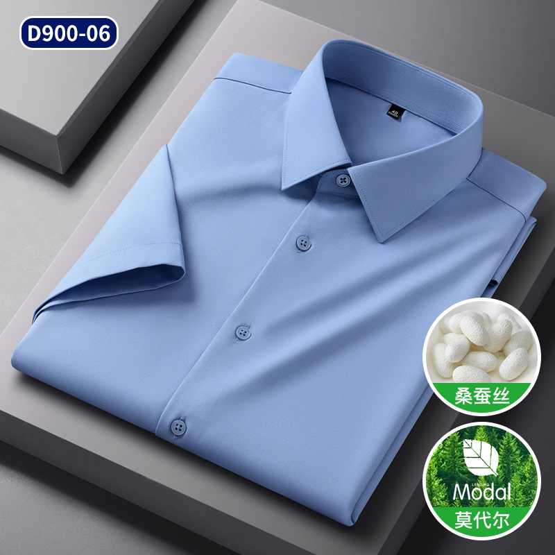 2025 신상품 [실크 모달] 비즈니스 캐주얼 셔츠 반팔 비 다림질 고급 남성용 셔츠