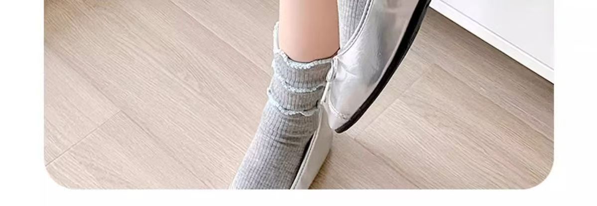 양말 여성의 봄과 가을 3 층 나무 귀 중간 길이 양말 2025 새로운 한국 발레 스타일 달콤한 패션 스타킹