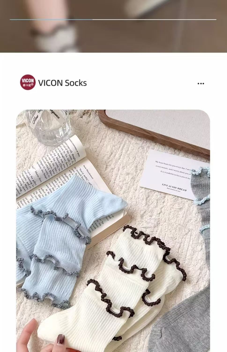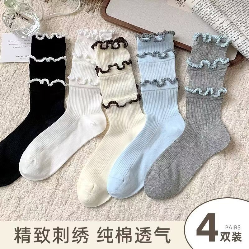양말 여성의 봄과 가을 3 층 나무 귀 중간 길이 양말 2025 새로운 한국 발레 스타일 달콤한 패션 스타킹스토어 가기