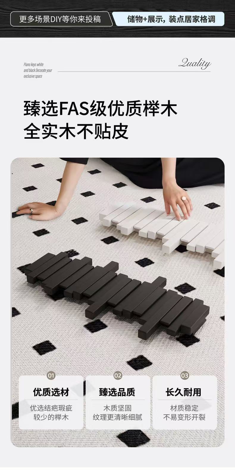 • [펀칭 불필요] 피아노 블랙 12건반, 엇갈린 스타일 [FAS 등급 수입 너도밤나무]
