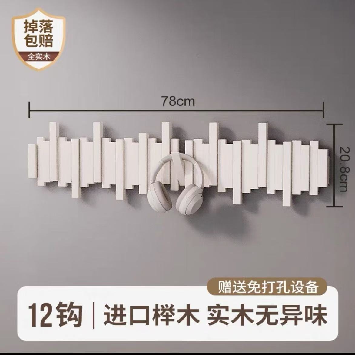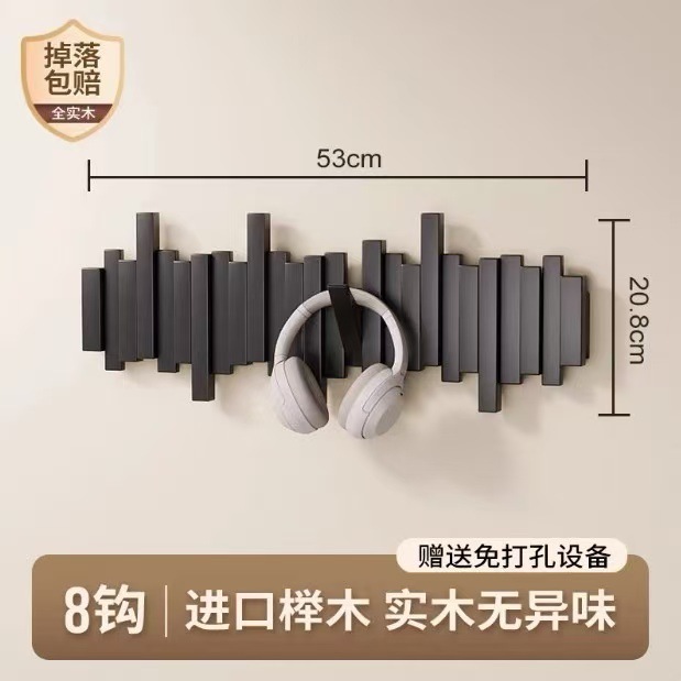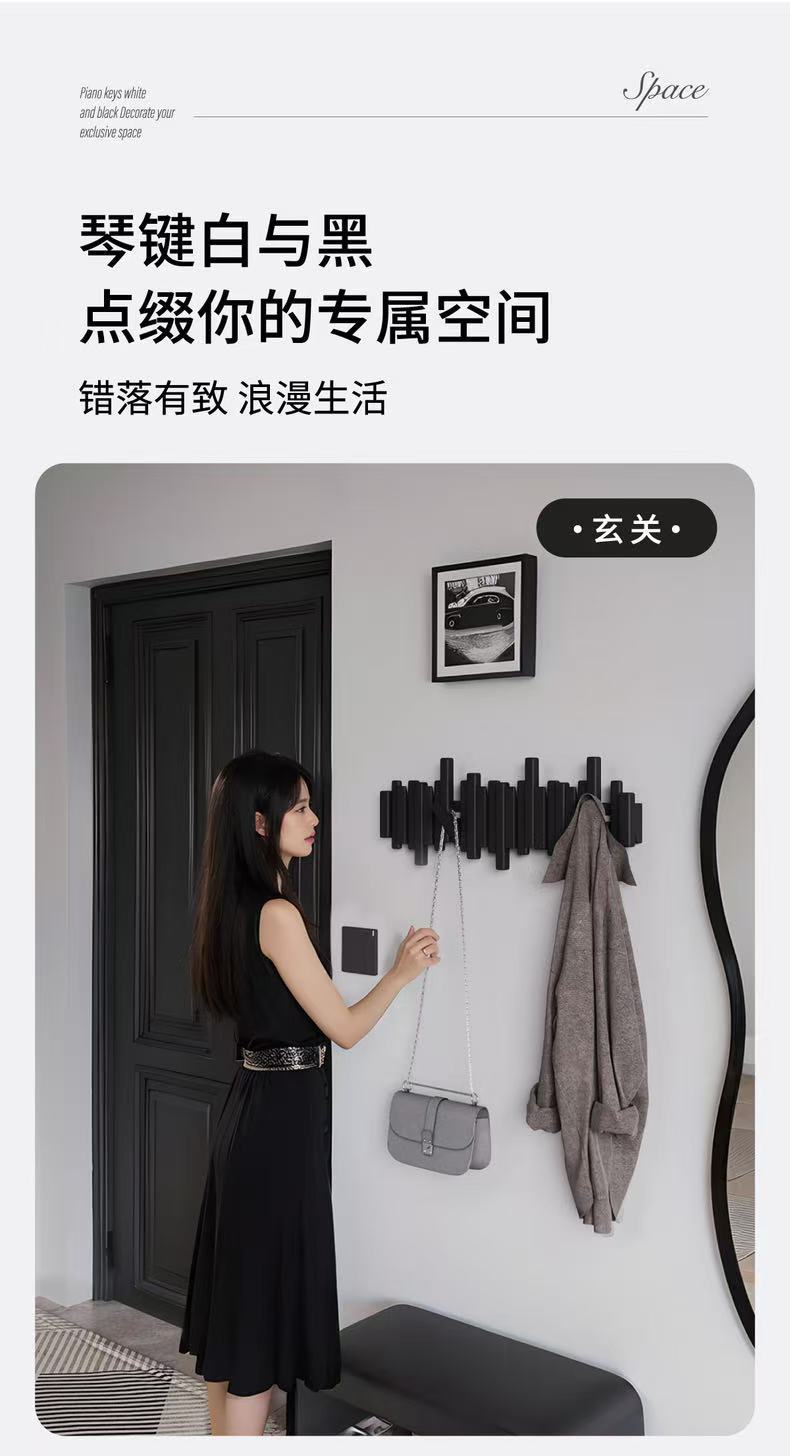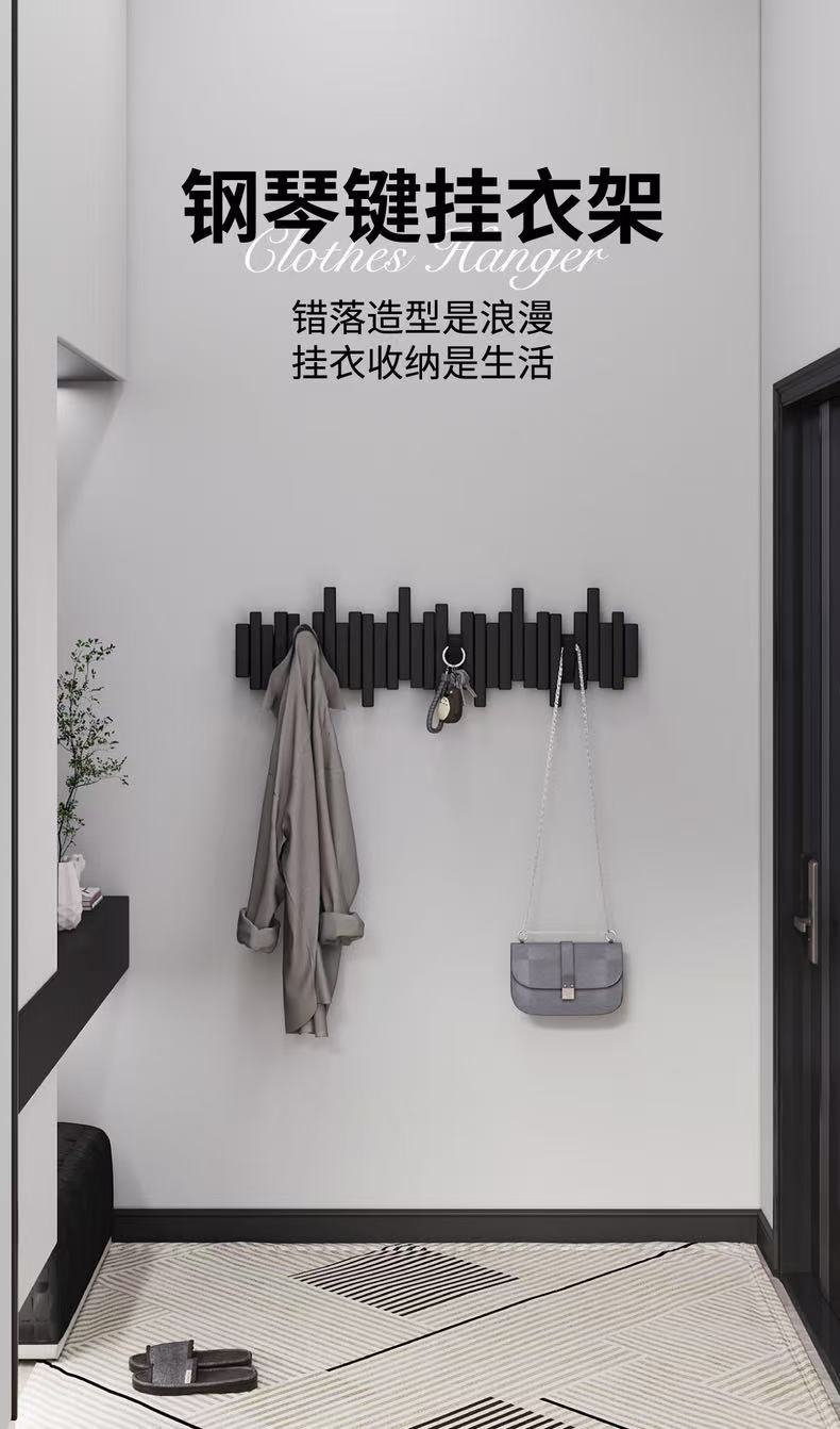 피아노 키 걸이 단단한 나무 벽 후크 침실 입구 입구 문 보관 펀치 프리 코트 랙