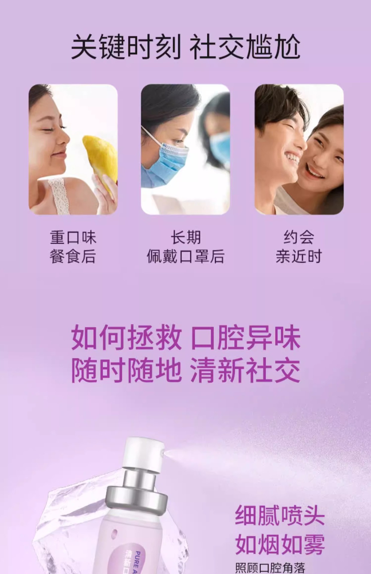 구강 스프레이 구강 청정제 스프레이 호흡 청정제 오래 지속되는 구취 제거 복숭아 맛 남성과 소녀 키스
