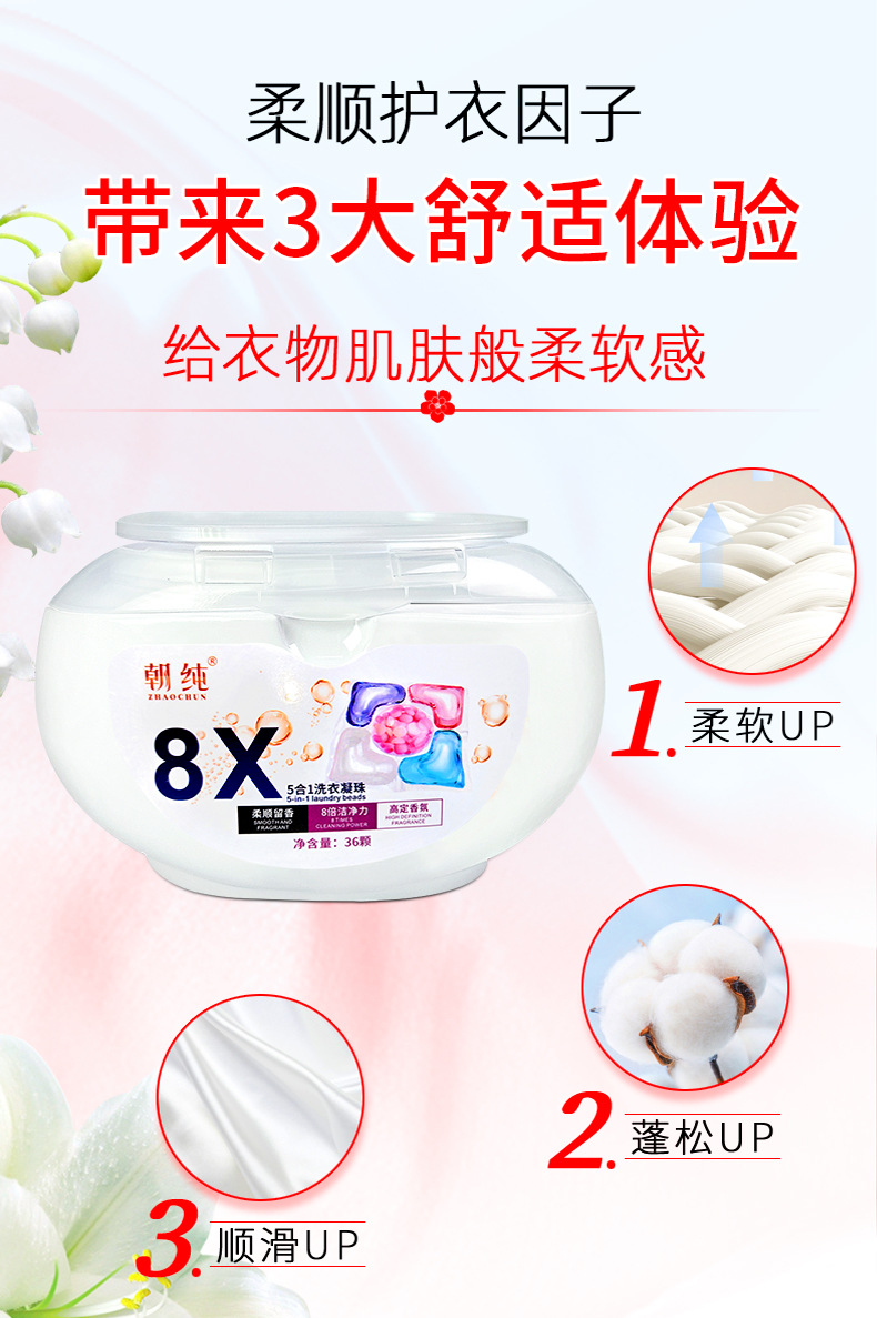 5 챔버 세탁 비즈 36 박스형 오래 지속되는 향기 세탁 비즈 딥 클리닝 오염 제거 향기 비즈 도매 제조 업체스토어 가기