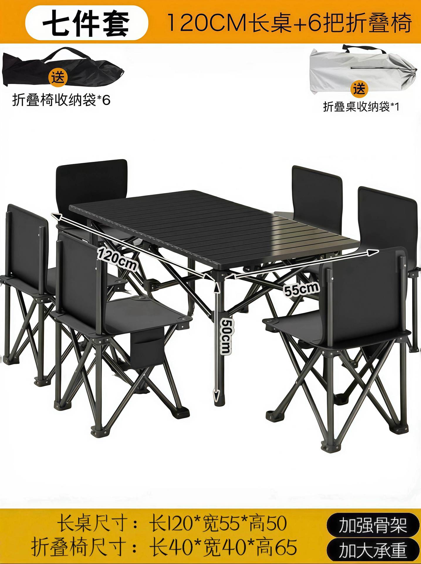 • 블랙 120 롱 테이블 + 대형 블랙 접이식 의자*6 [6인 여행]