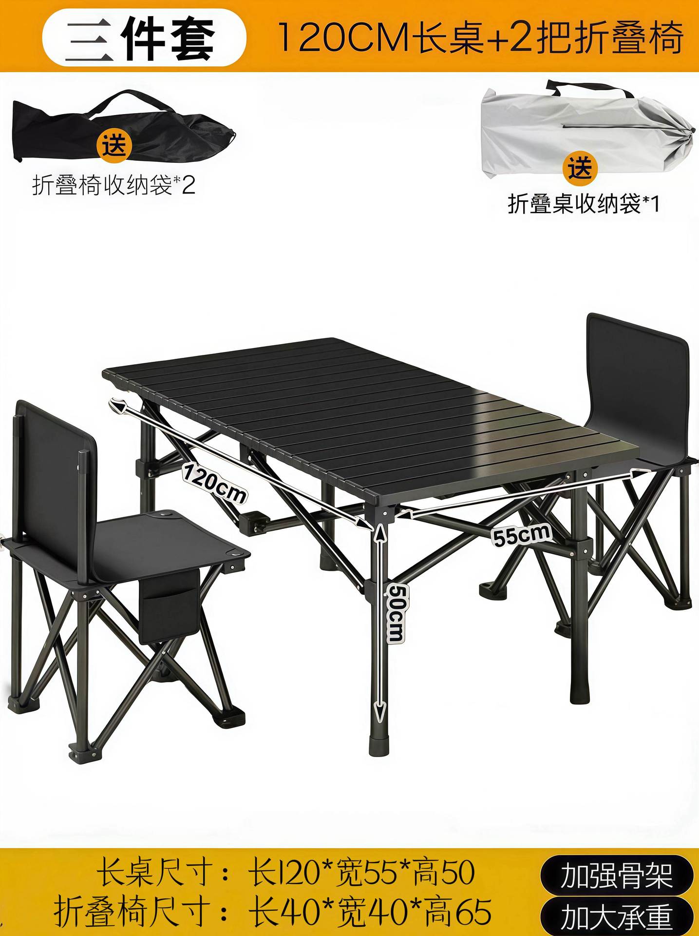 • 블랙 120 롱 테이블 + 대형 블랙 접이식 의자*2 [2인 여행]