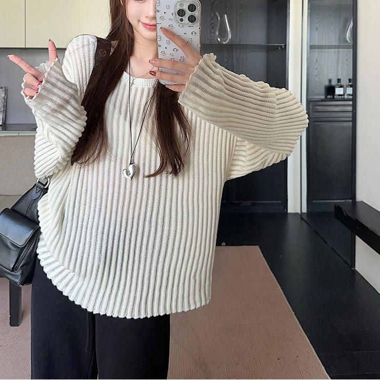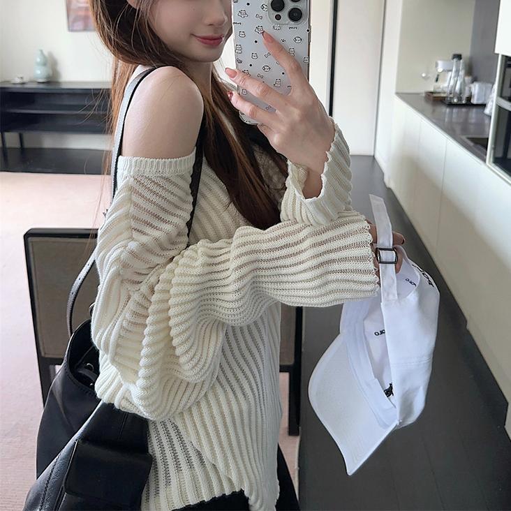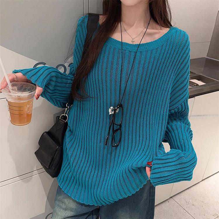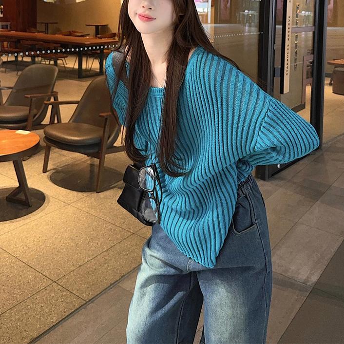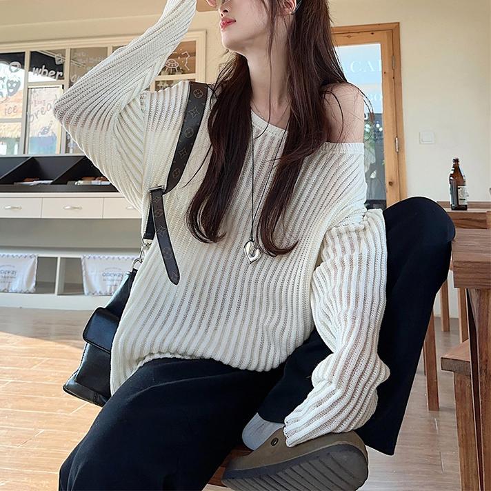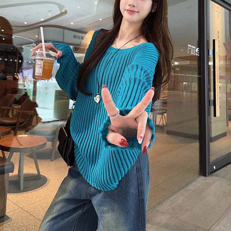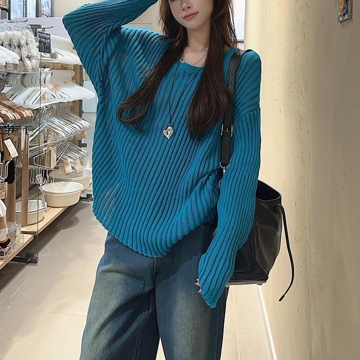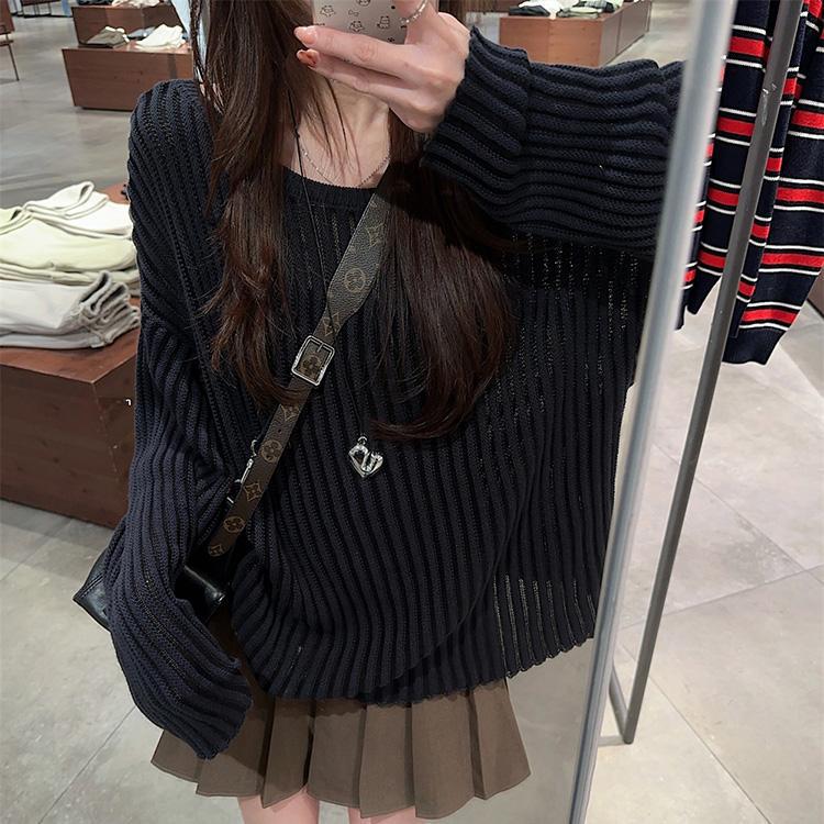 게으른 스타일 마이크로 투명 할로우 아웃 긴팔 스웨터 여성 초가을 새 달콤한 스파이스 걸 올 매치 긴소매 선 스크린 블라우스 탑스토어 가기