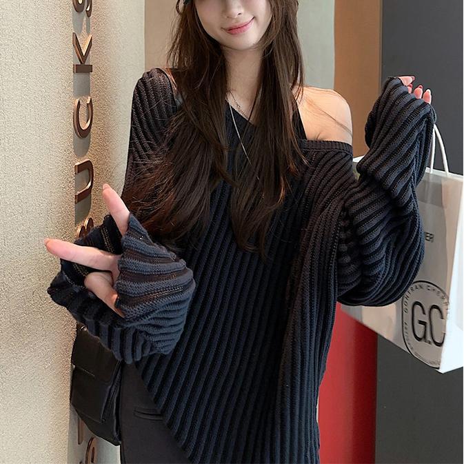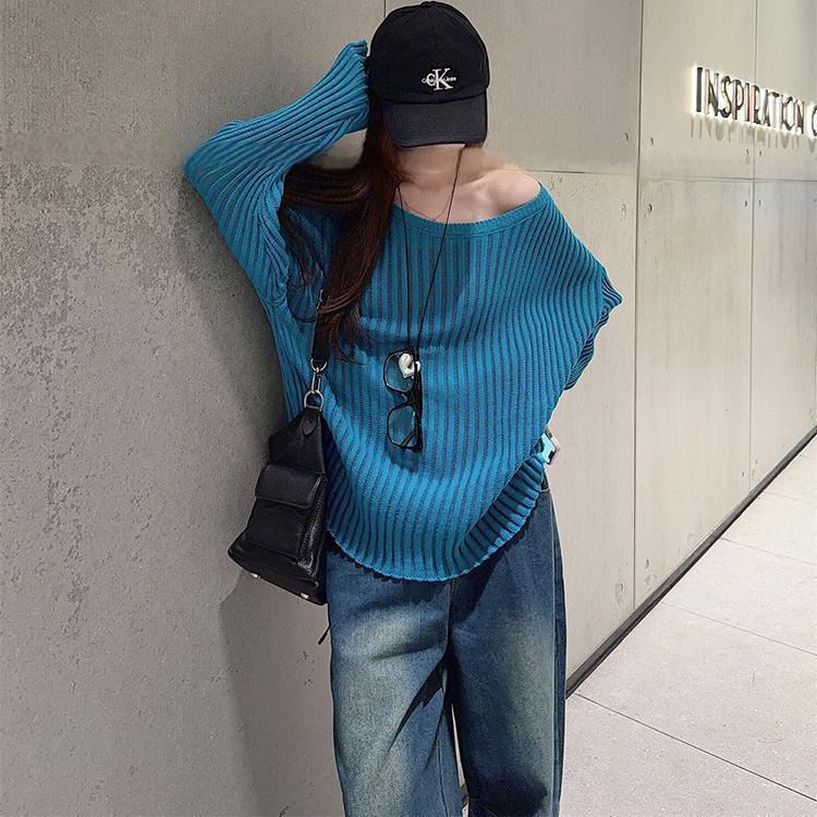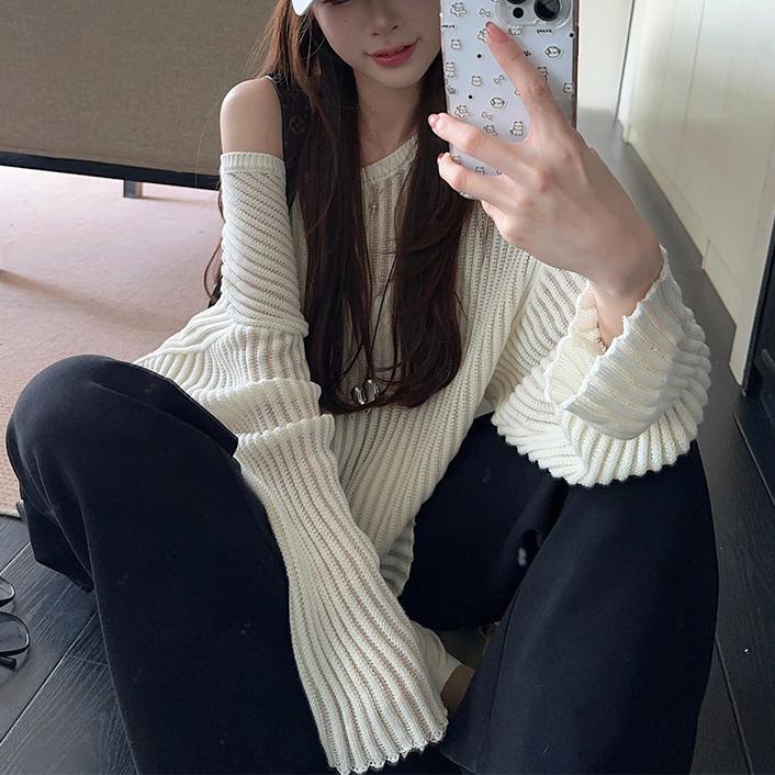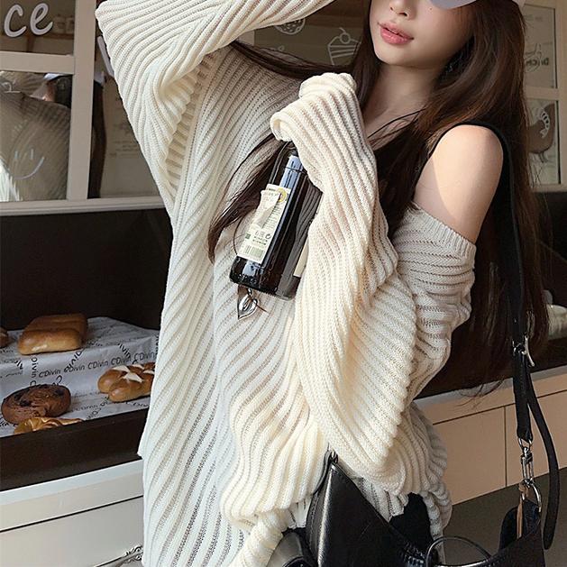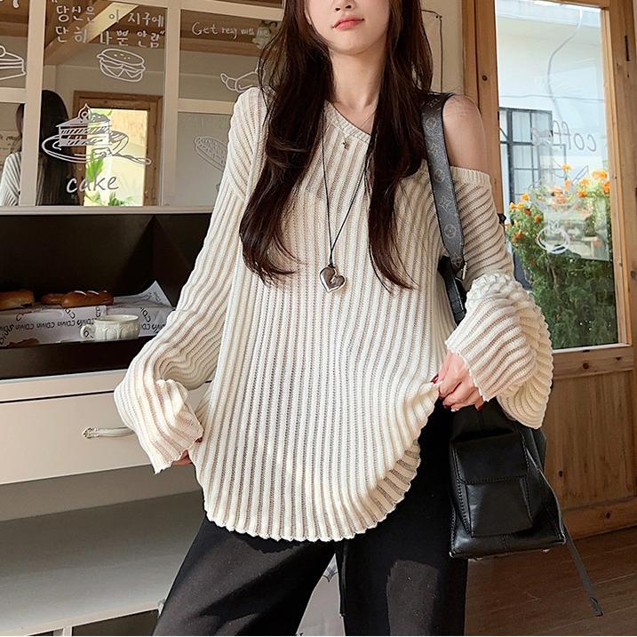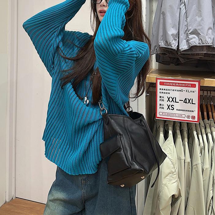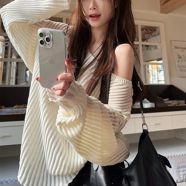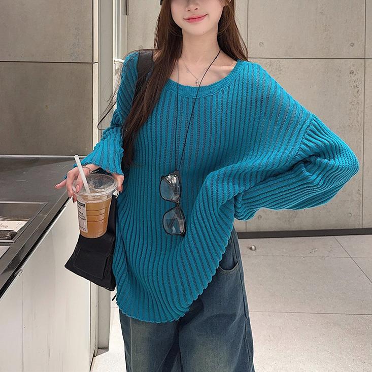 게으른 스타일 마이크로 투명 할로우 아웃 긴팔 스웨터 여성 초가을 새 달콤한 스파이스 걸 올 매치 긴소매 선 스크린 블라우스 탑스토어 가기