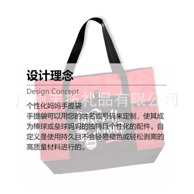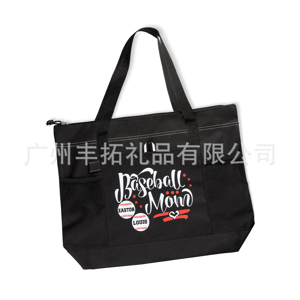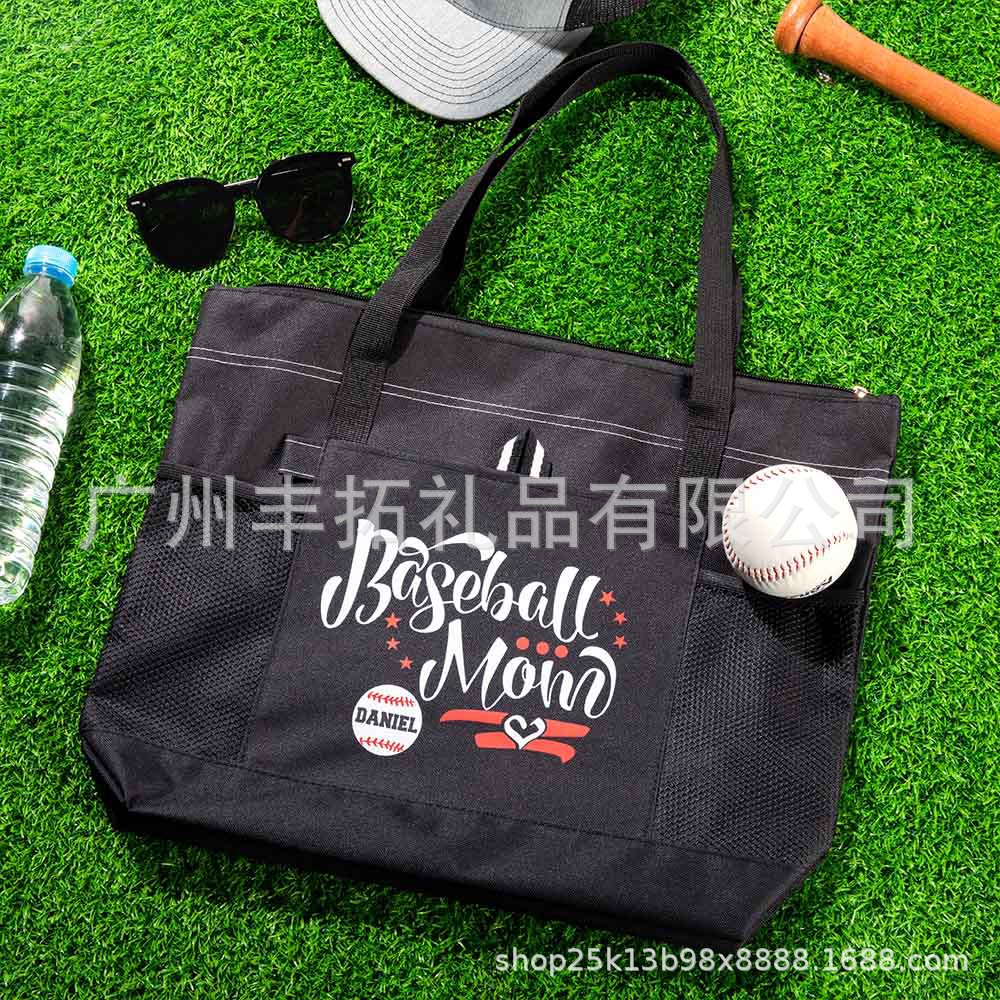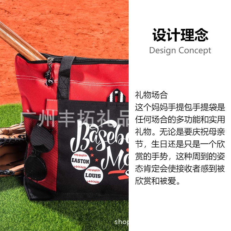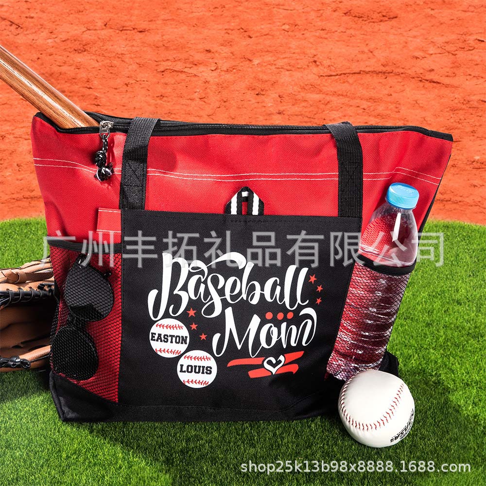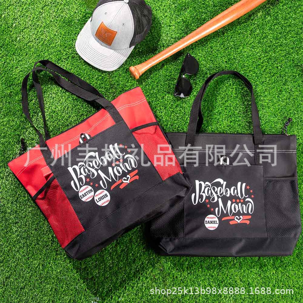 이름이 새겨진 야구 또는 소프트볼 엄마 경량 옥스포드 천 토트백