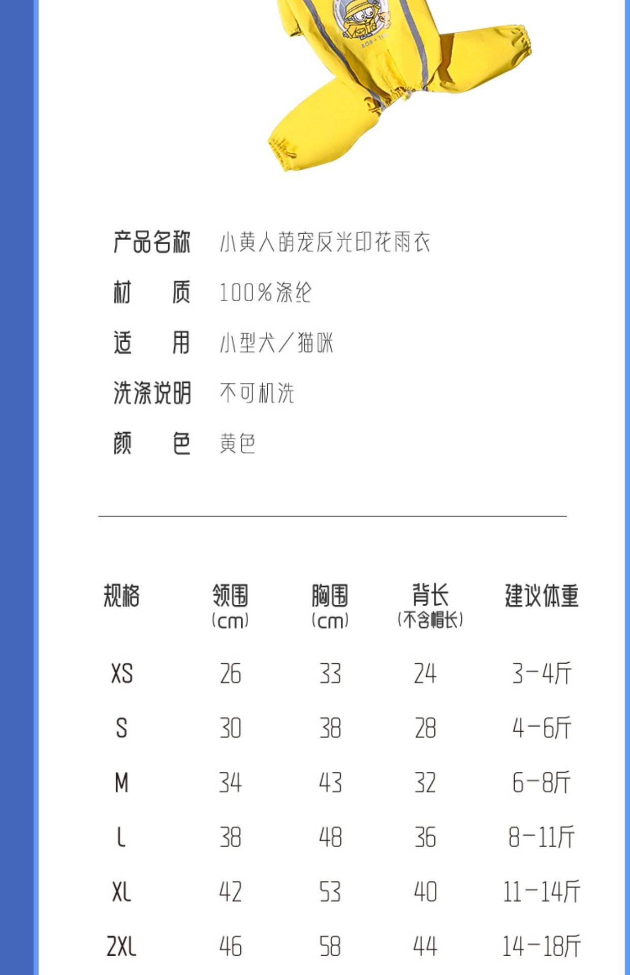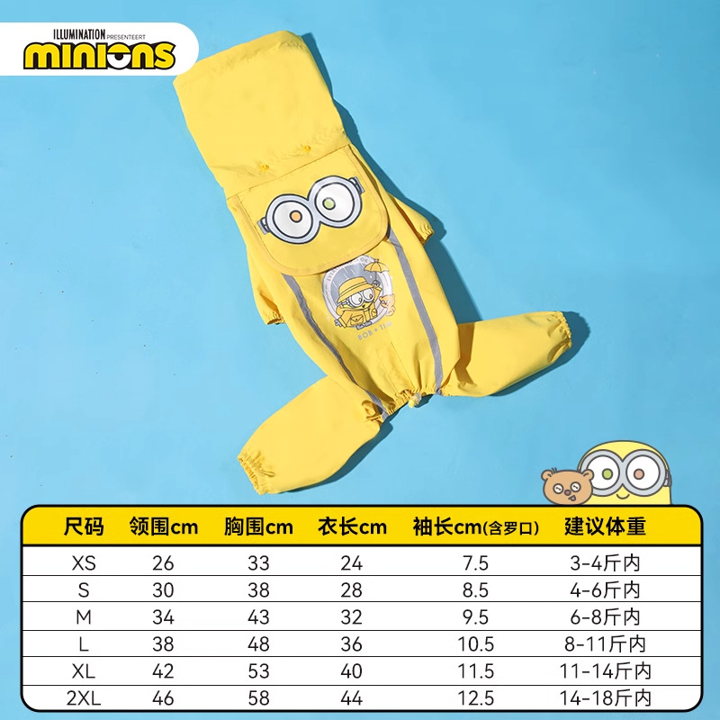 미니언 | 귀여운 애완 동물 반사 프린트 비옷 방수 애완 동물 강아지 옷 고양이 개 옷스토어 가기