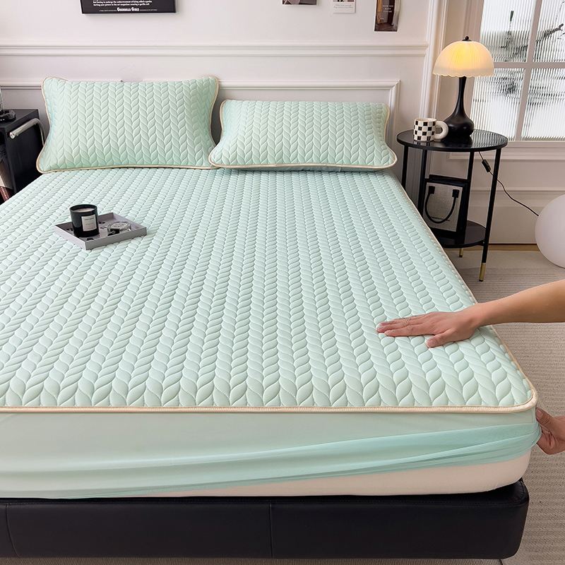 • 민트 그린 - 장착 시트 [전체 라텍스 충전재, 동일한 스타일의 베갯잇 포함]