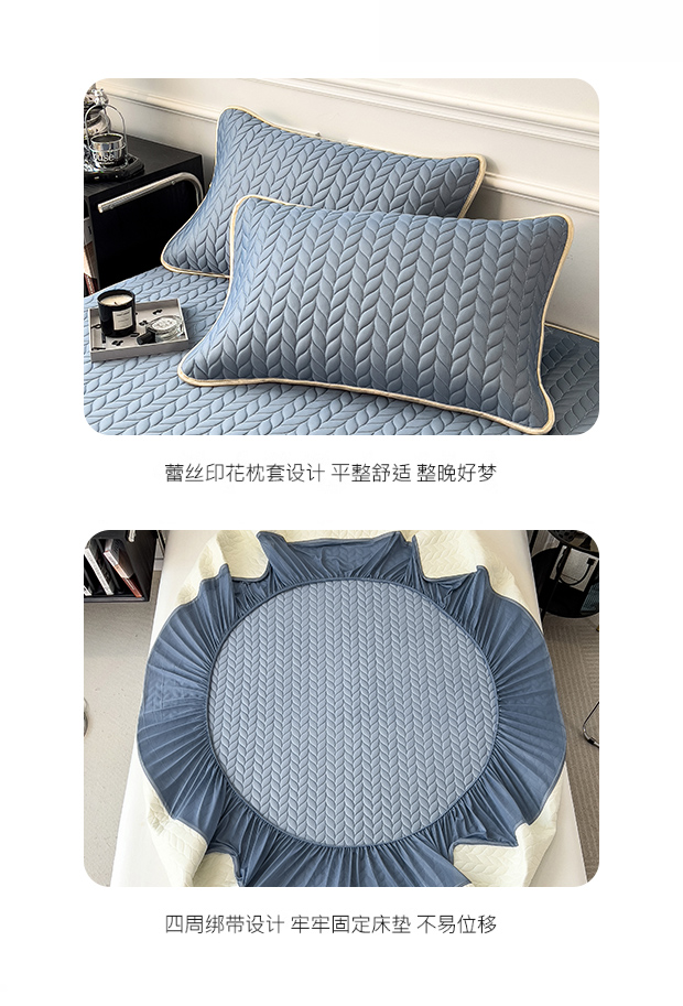 • 블루 그레이 - 장착 시트 [전체 라텍스 충전재, 동일한 스타일의 베갯잇 포함]