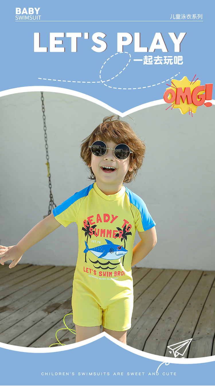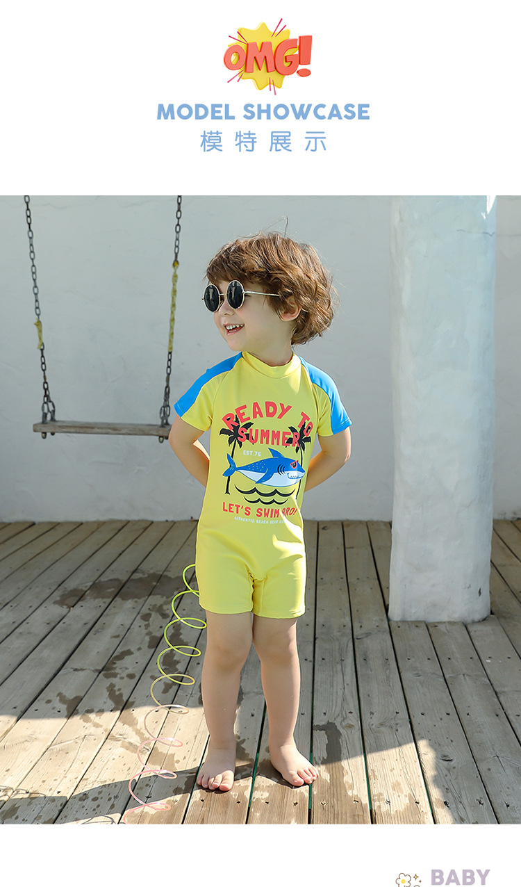 어린이 수영복 소년 소형, 중형 및 대형 어린이 2025 새로운 스플릿 수영복 귀여운 아기 자외선 차단제 속건성 수영복스토어 가기