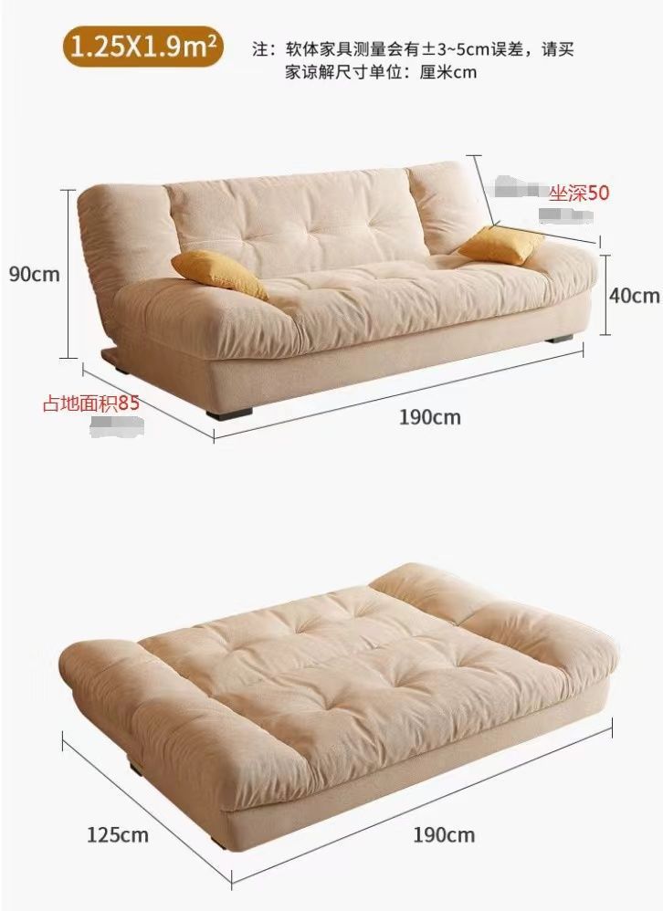 솔리드 우드 클라우드 듀얼 사용 접이식 소파 다기능 거실 작은 아파트 소파 침대 현대 크림 스타일 인터넷 유명 인사스토어 가기