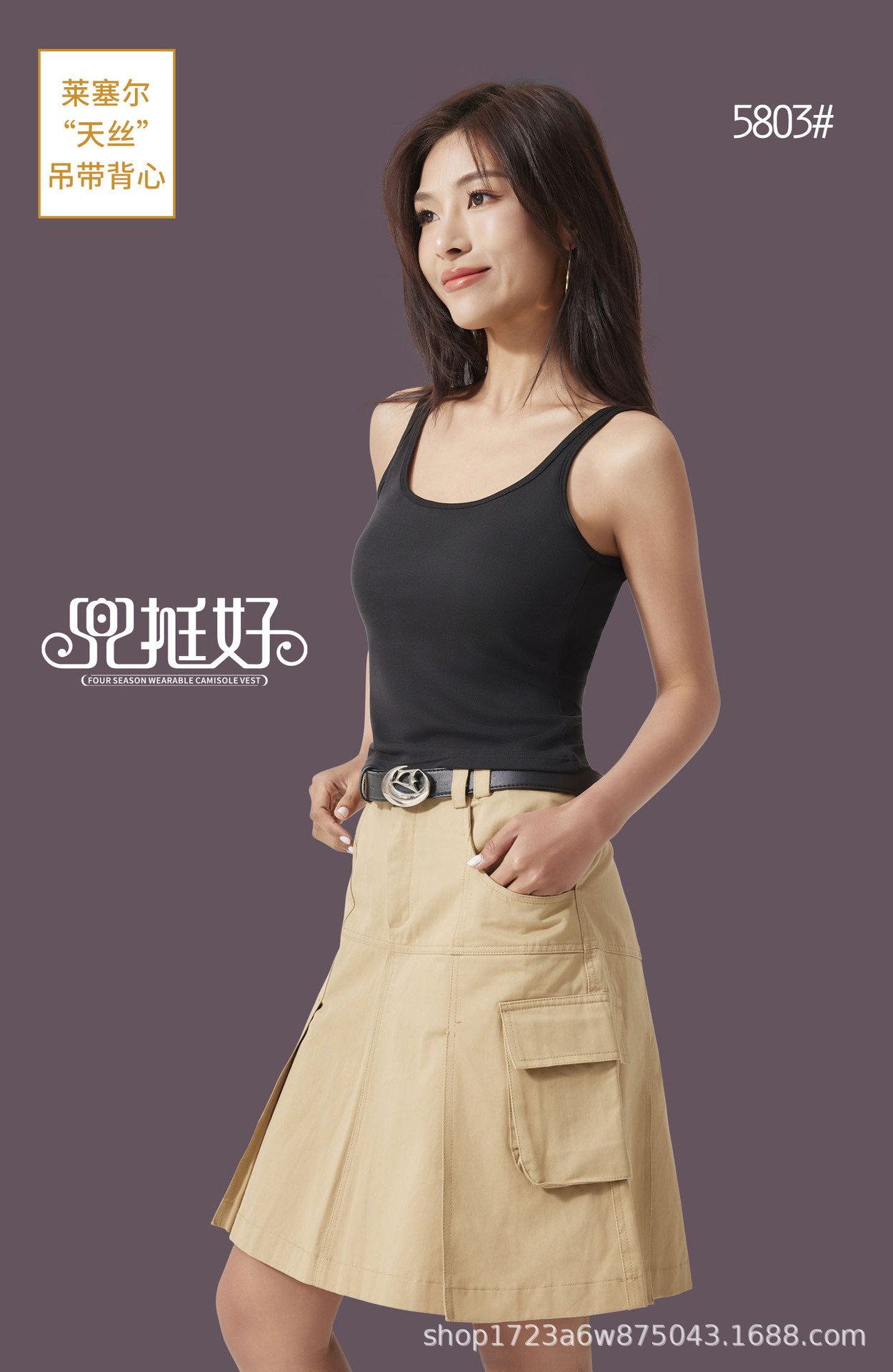 폭발성 Camisole 여성 내부 착용 외부 소매 없는 베이스 셔츠 여름 Lyocell 슬림 핏 재킷 여성