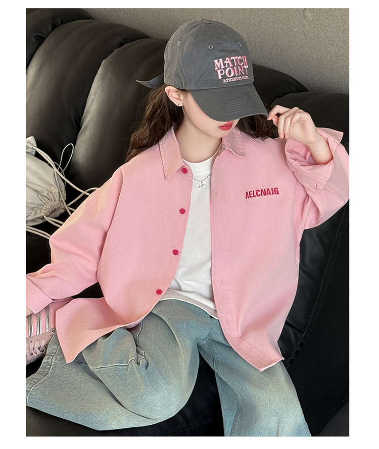 소녀 셔츠 2025 봄 새 스타일 큰 어린이 유행 올 매치 옷깃 셔츠 탑 어린 소녀의 셔츠 코트