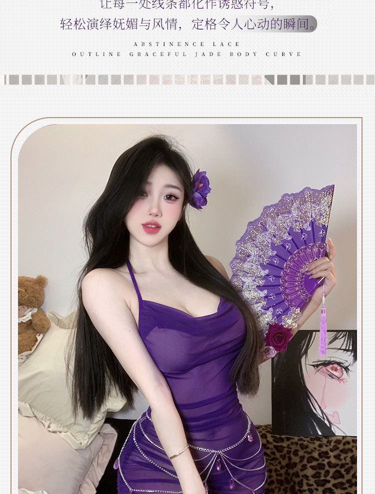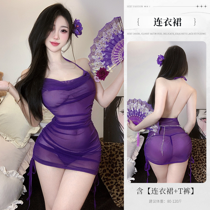 섹시한 스파이스 걸스 순수한 욕망 메시 슬링 원피스 여성용 주름 가방 엉덩이 관점 비 이륙 잠옷 세트 2168스토어 가기