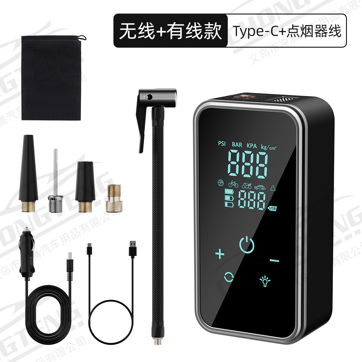 【包装清单】:主机、充气管,气嘴配件*4个、USB充电线、3米点烟器线、说明书、收纳袋。