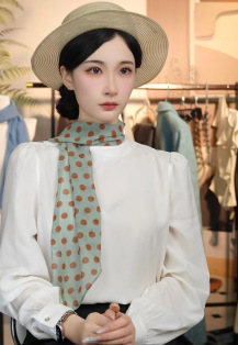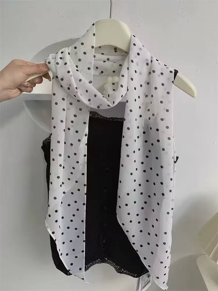 2025 실크 스카프 여성 스카프 패션 한국 인쇄 물 파문 다크 브라운 웨이브 도트 긴 새 스타일 소녀 장식스토어 가기