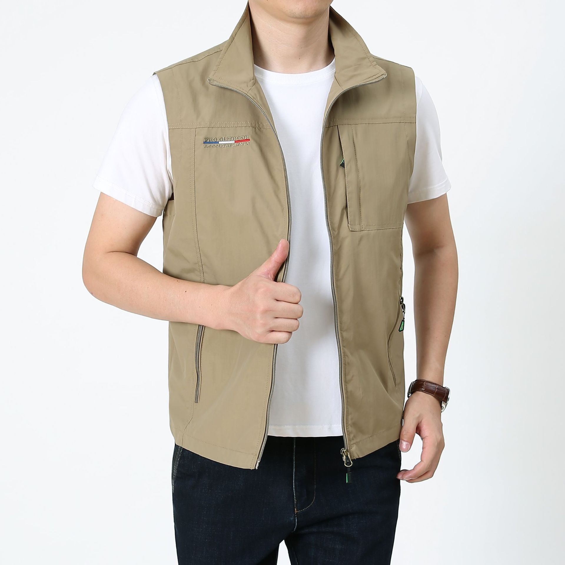 새로운 봄과 가을 남성 캐주얼 사진 야외 조끼 로고 등산 스포츠 웨이스트 코트 재킷