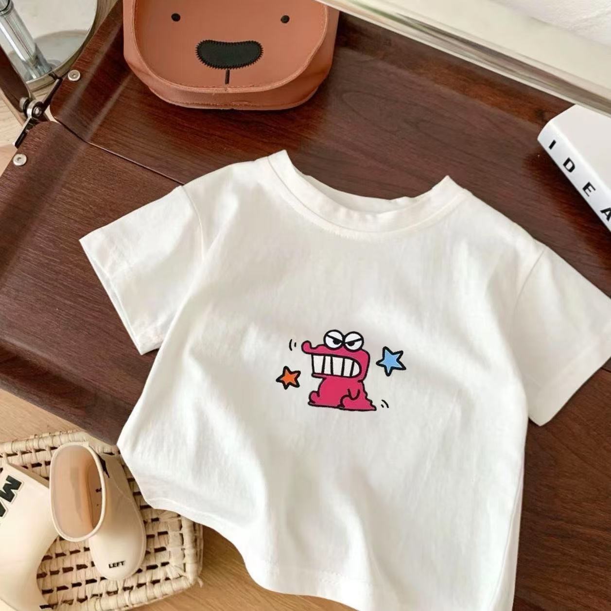 순면 남아 및 여아 반팔 티셔츠 여름 아동복 패셔너블한 아동용 하의 셔츠 얇고 다재다능한 상의