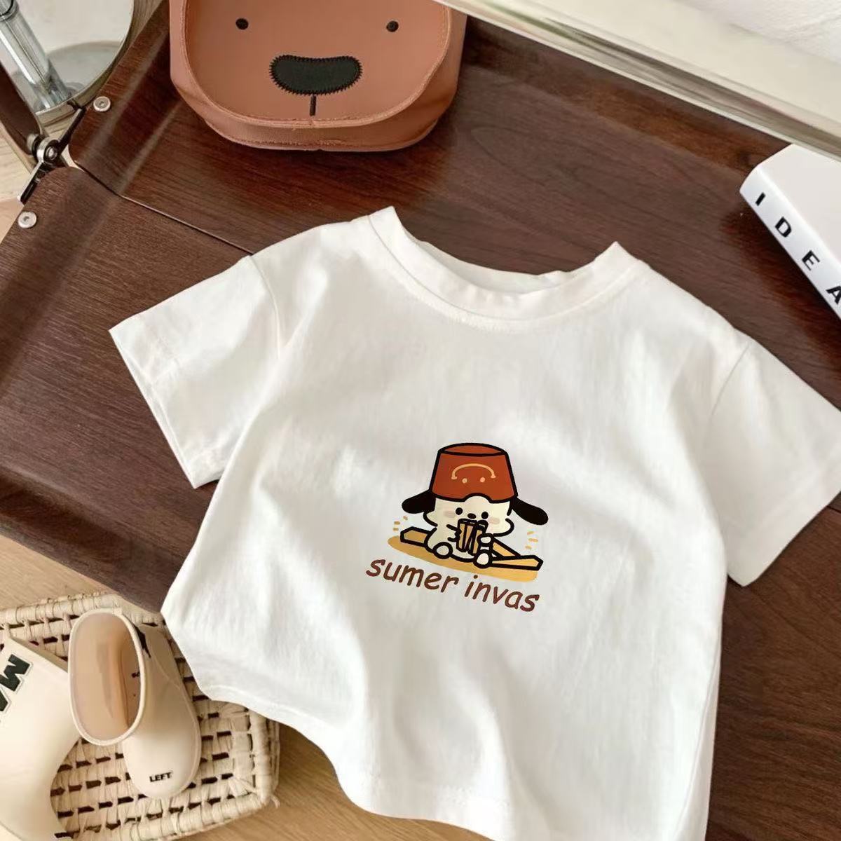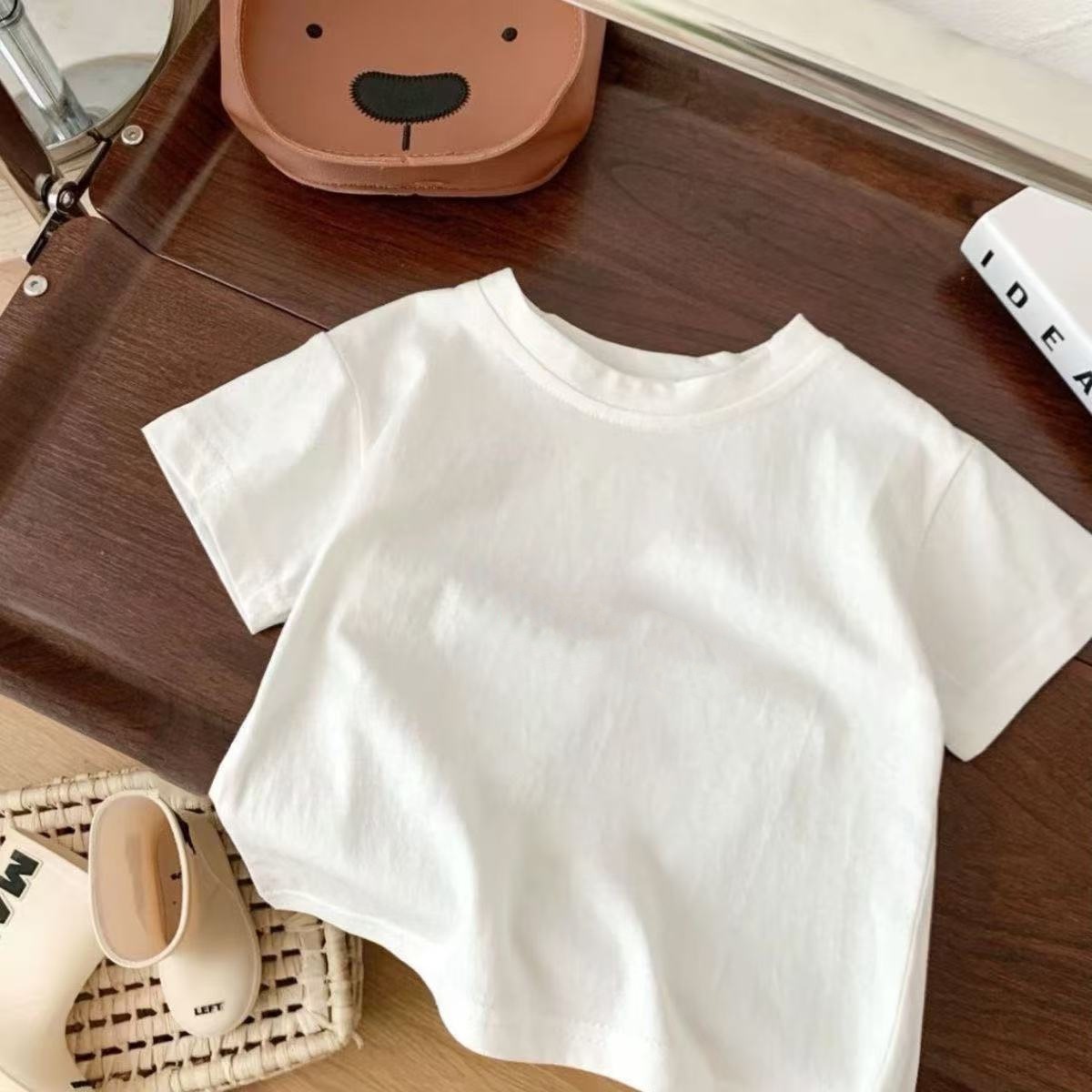 순면 남아 및 여아 반팔 티셔츠 여름 아동복 패셔너블한 아동용 하의 셔츠 얇고 다재다능한 상의스토어 가기