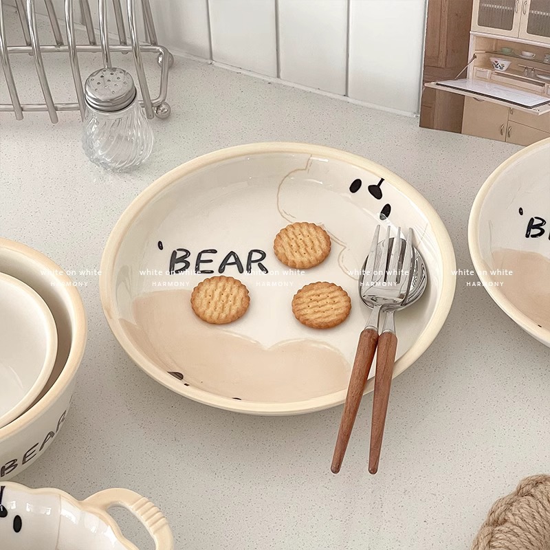 높은 아름다움 가치 가정용 그릇 접시 유약 컬러 플레이트 귀여운 아침 식사 플레이트 세라믹 과일 샐러드 케이크 디저트 플레이트 디스크스토어 가기