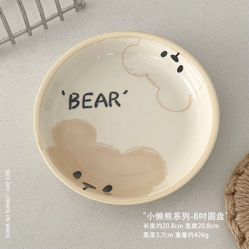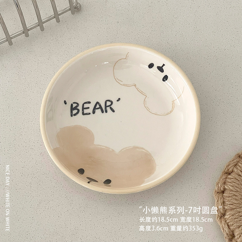 높은 아름다움 가치 가정용 그릇 접시 유약 컬러 플레이트 귀여운 아침 식사 플레이트 세라믹 과일 샐러드 케이크 디저트 플레이트 디스크