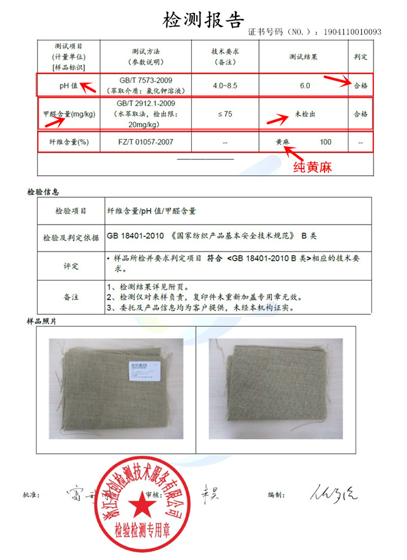 黄麻本身有股麻味道,味道无毒,我司已质检,质检图在下面。这个就像我们新买家具 都有个味道!放太阳晒晒 吹吹风。过段时间自然会渐渐消失!可以接受在拍!刚刚到手的黄麻布料会掉毛哦
