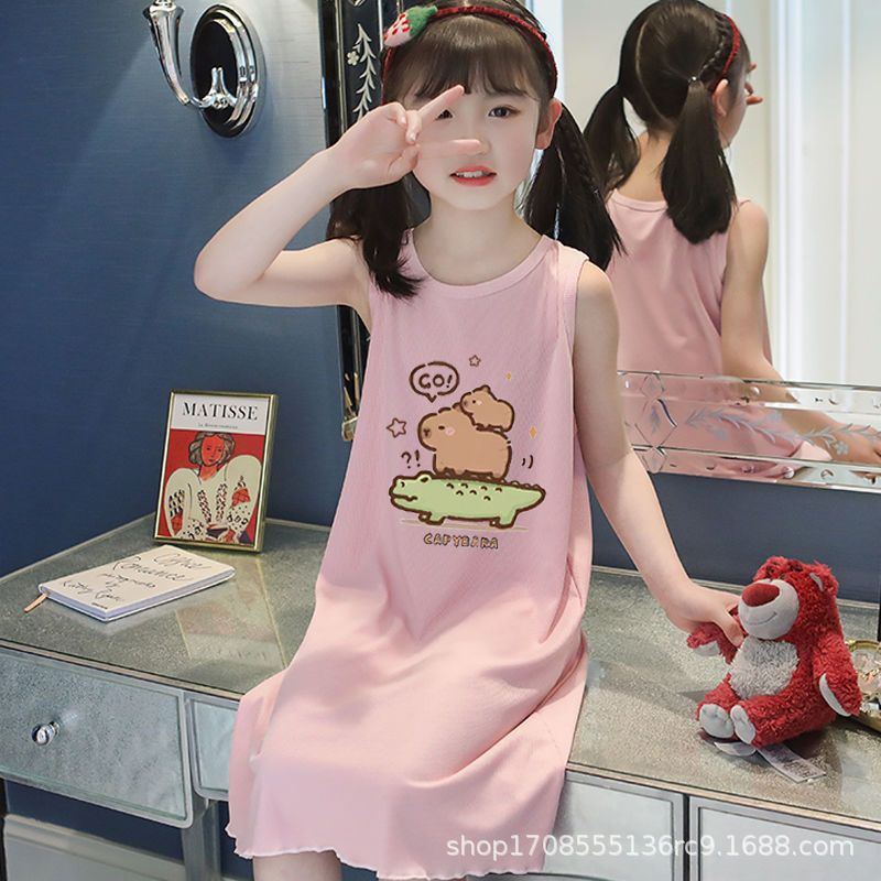 새로운 모달 소녀 얇은 네자 조끼 치마 큰 아이들 소녀 귀여운 달콤한 외주 잠옷스토어 가기