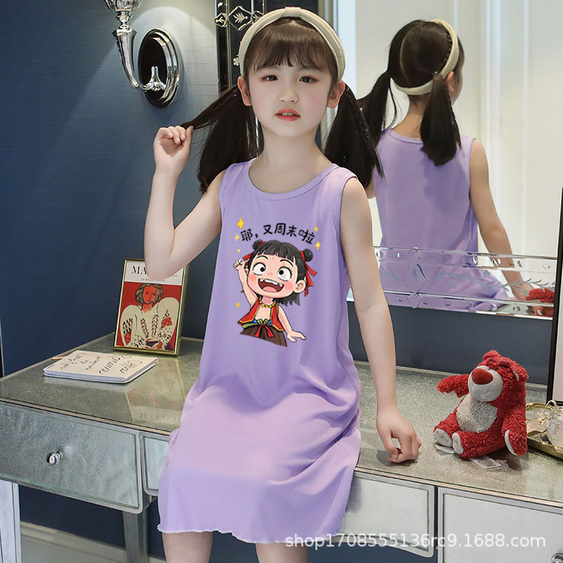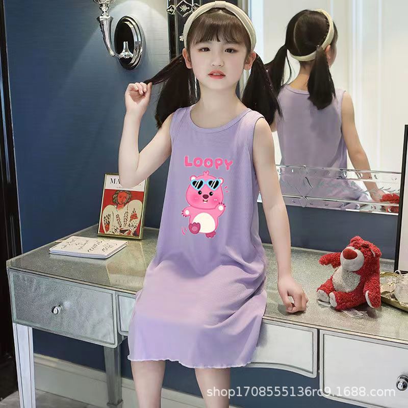 새로운 모달 소녀 얇은 네자 조끼 치마 큰 아이들 소녀 귀여운 달콤한 외주 잠옷