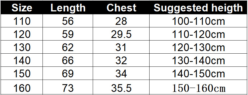 6个码数:110  120  130 140  150  160