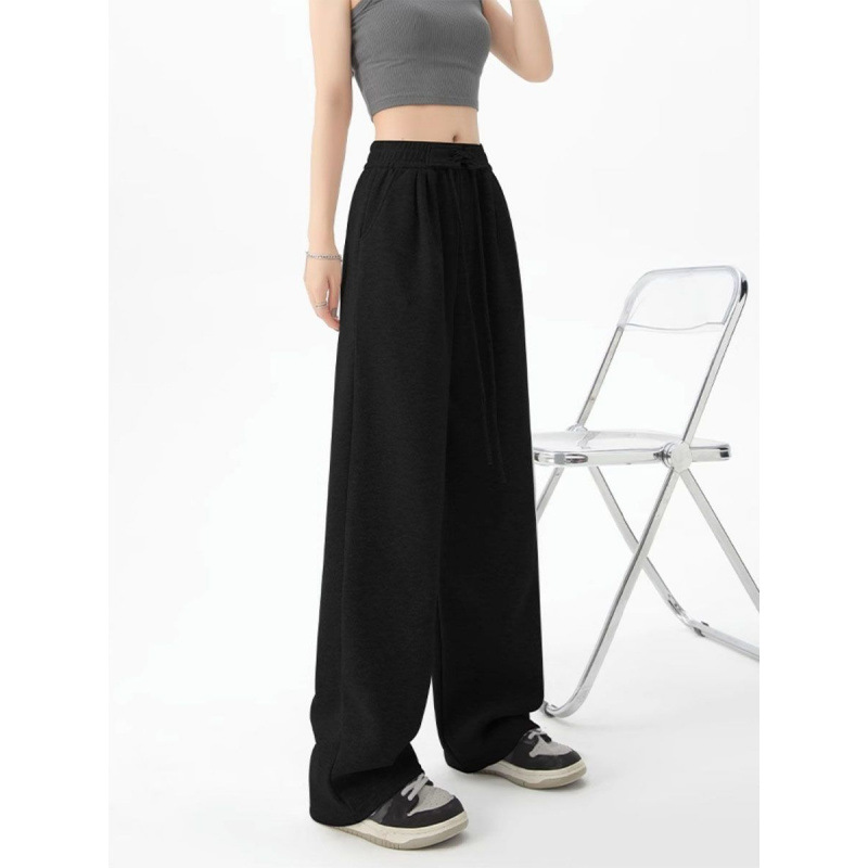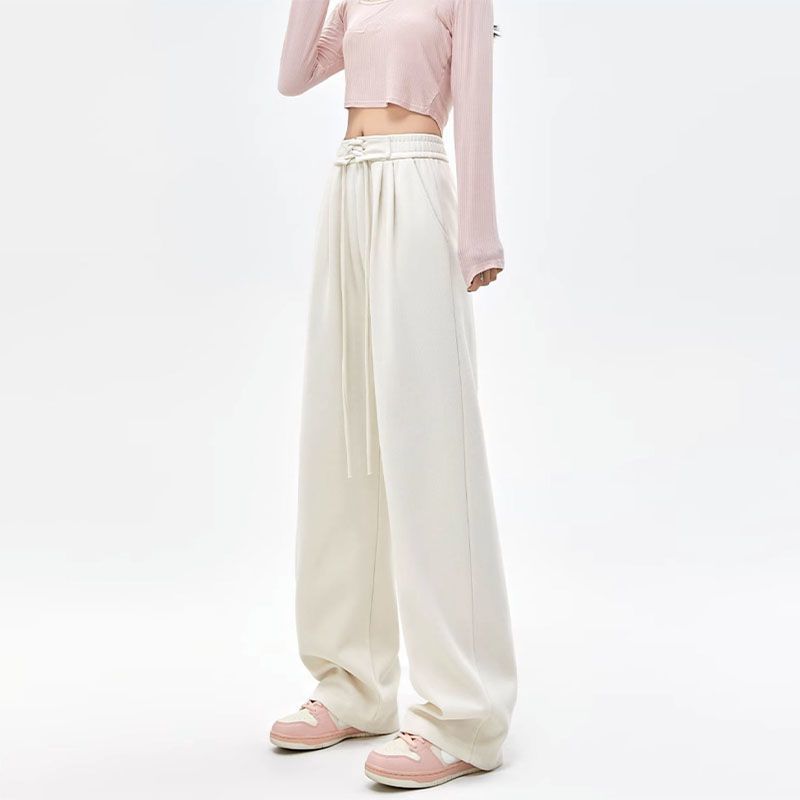 2025 새로운 봄과 가을 레이스 업 와이드 레그 팬츠 여성의 작은 슬리밍 올 매치 하이 웨이스트 캐주얼 스트레이트 팬츠스토어 가기