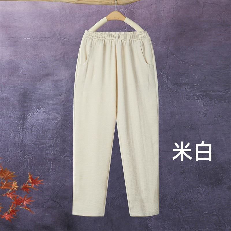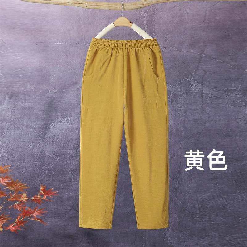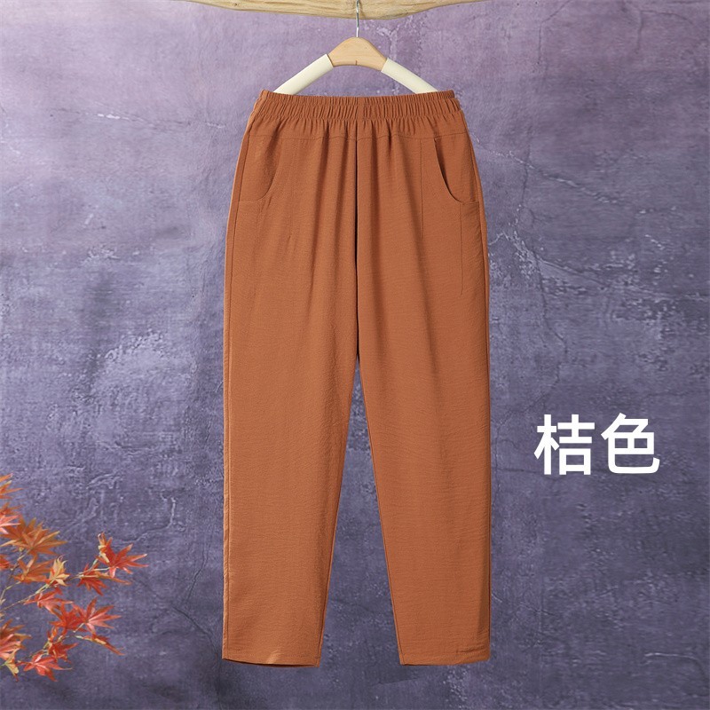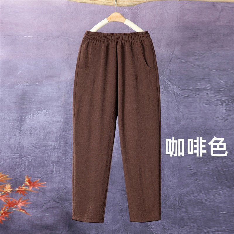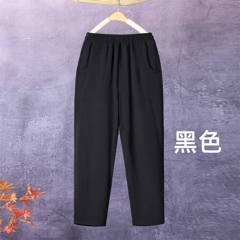 아이스 실크 발목 길이 바지 여성용 쿨 하렘 바지 여성용 높은 허리 느슨한 어머니 바지 얇은 중년 여름 캐주얼 바지