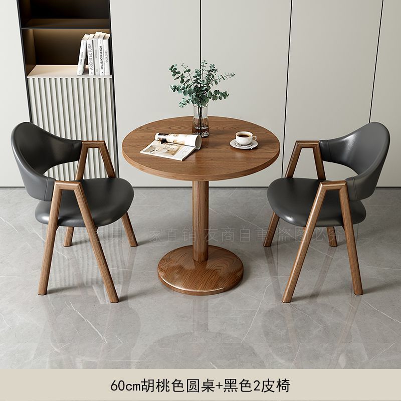 • @#블랙 가죽 의자 2개 + 월넛 컬러 원형 테이블 60개