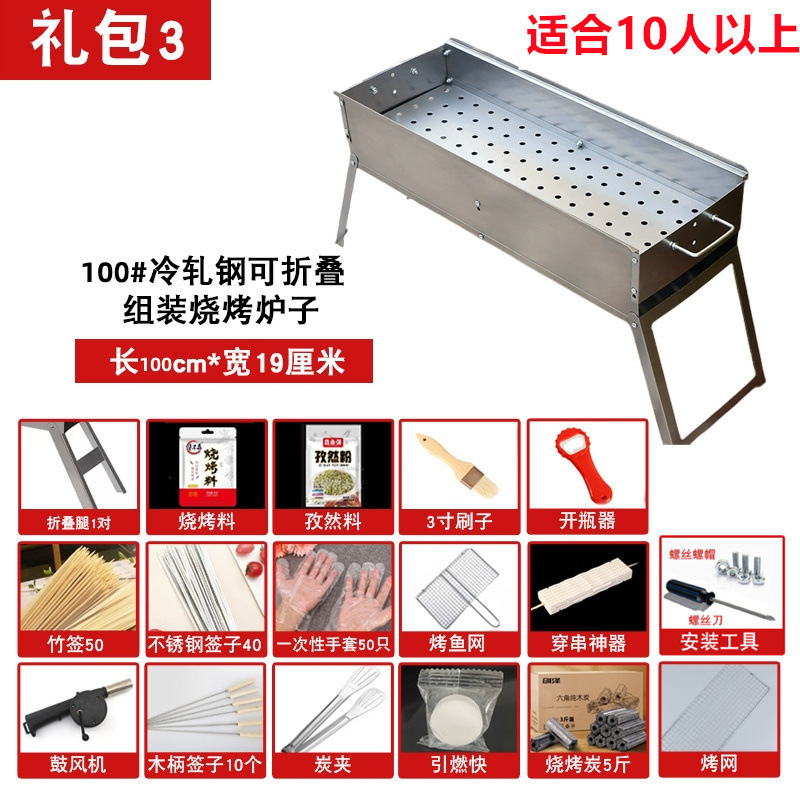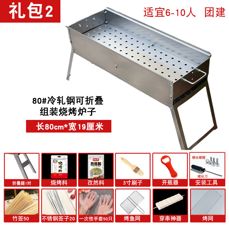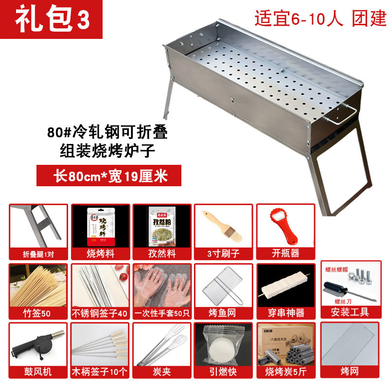• 80#패키지 3 [클래식 냉간 압연 강철 조립 접이식 바베큐 그릴] 무료 16종 세트