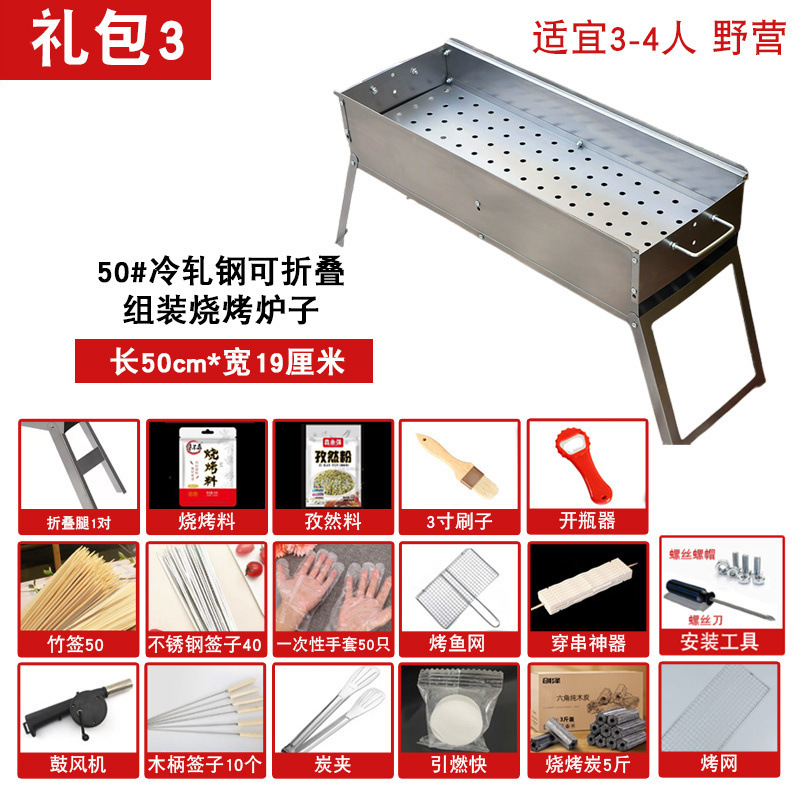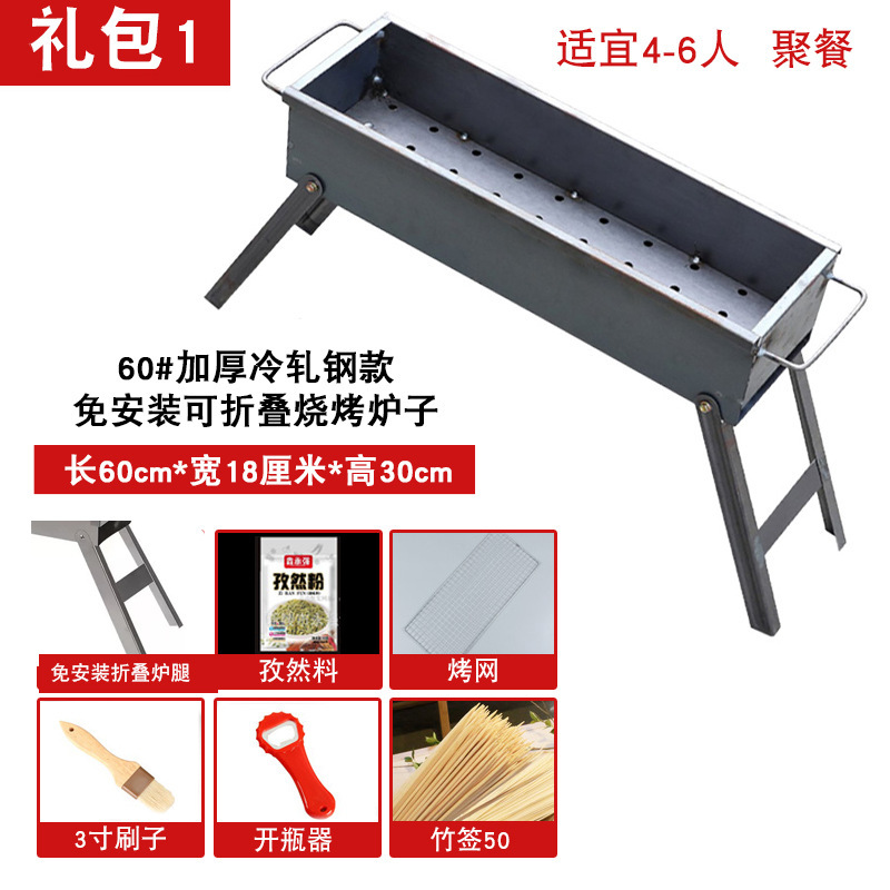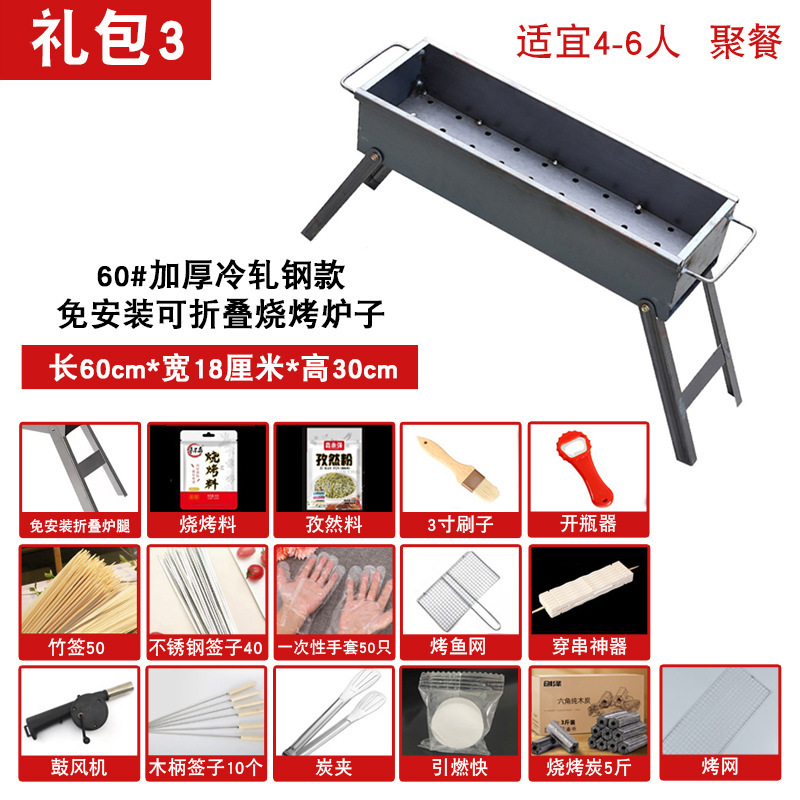 • 60#패키지 3 [클래식 냉간 압연 강철 조립 접이식 바베큐 그릴] 무료 16종 세트
