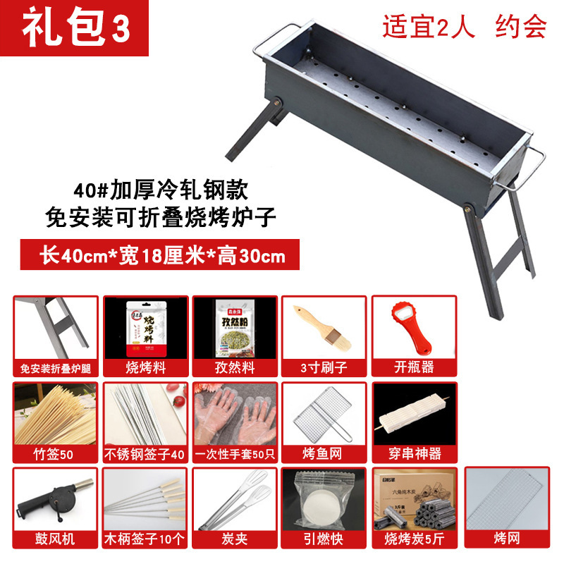 • 40#패키지 3 [클래식 냉간 압연 강철 조립 접이식 바베큐 그릴] 무료 16종 세트
