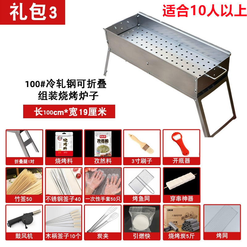 • 100#패키지 3 [클래식 냉간 압연 강철 조립 접이식 바베큐 그릴] 무료 16종 세트