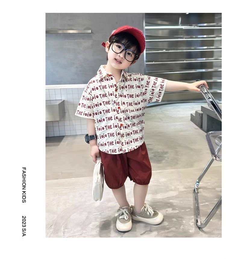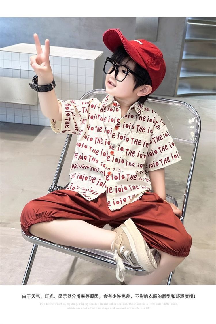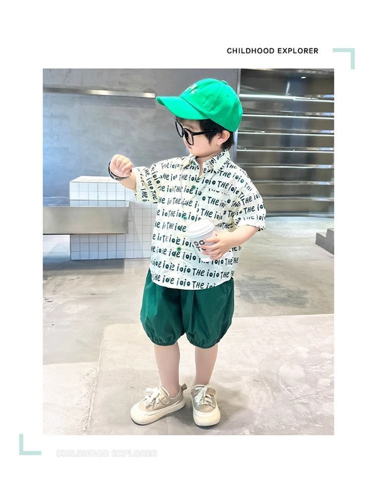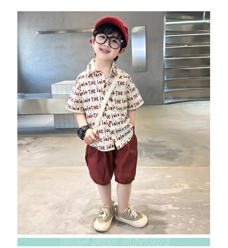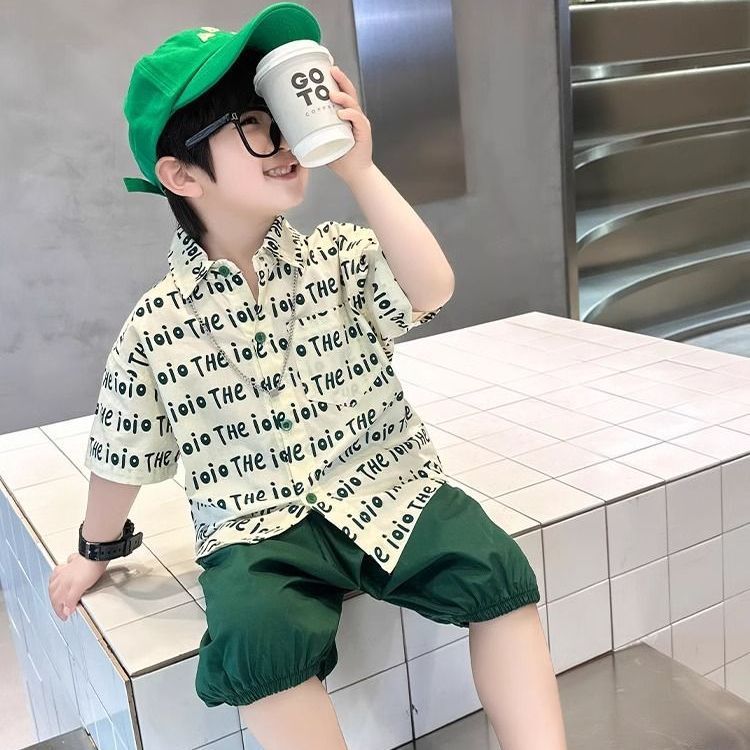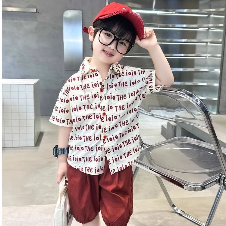 2025 소년 옷깃 전체 인쇄 편지 여름 얇은 인쇄 유행 새로운 캐주얼 올 매치 짧은 소매