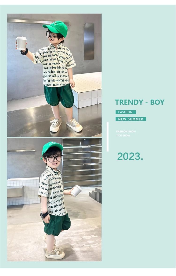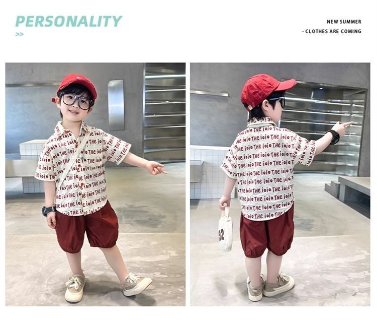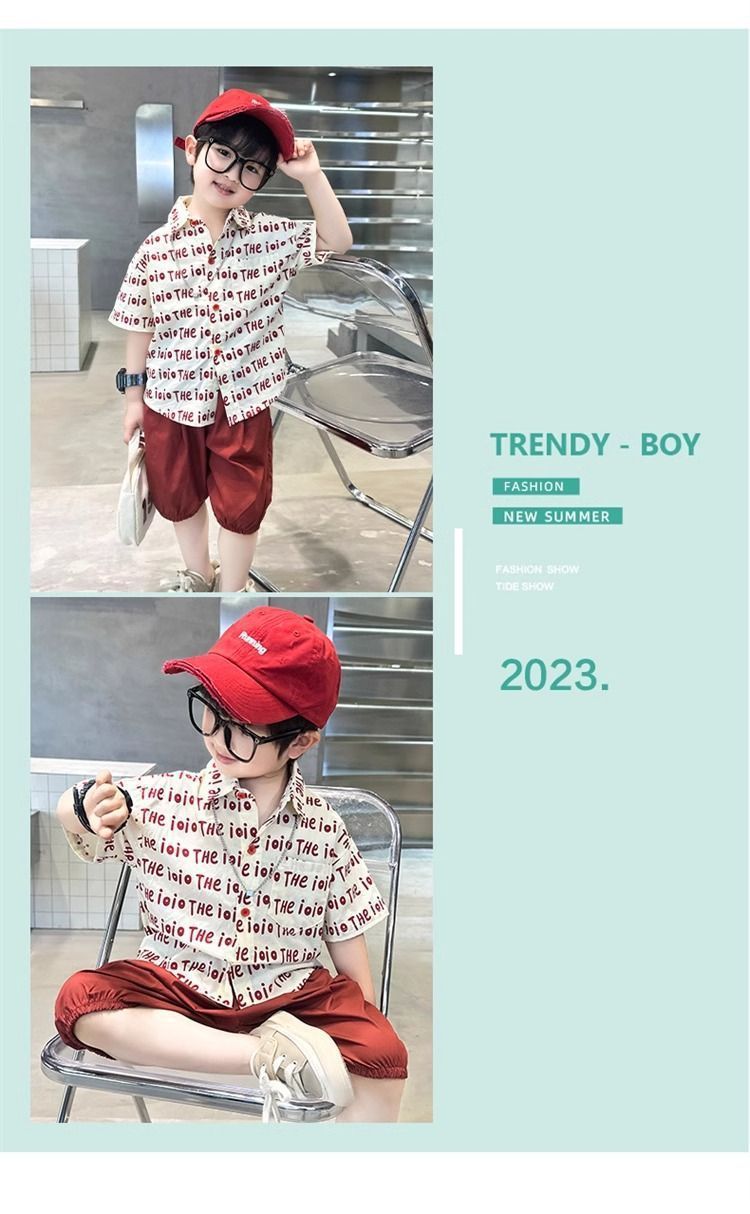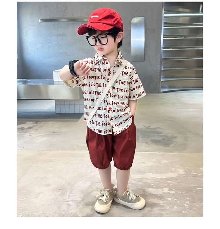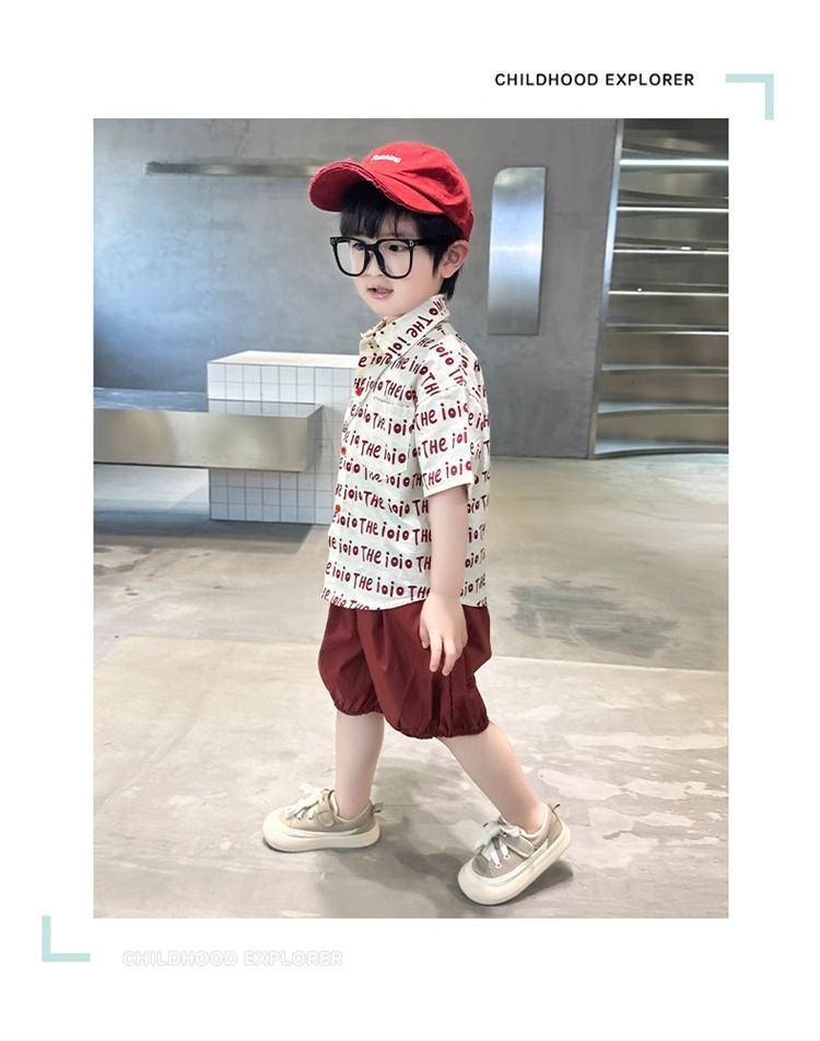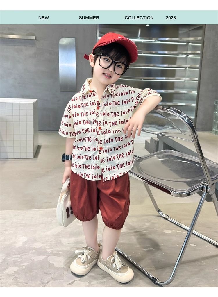 2025 소년 옷깃 전체 인쇄 편지 여름 얇은 인쇄 유행 새로운 캐주얼 올 매치 짧은 소매