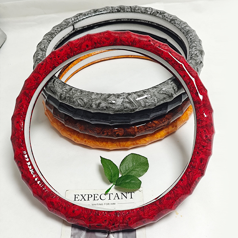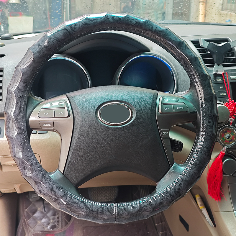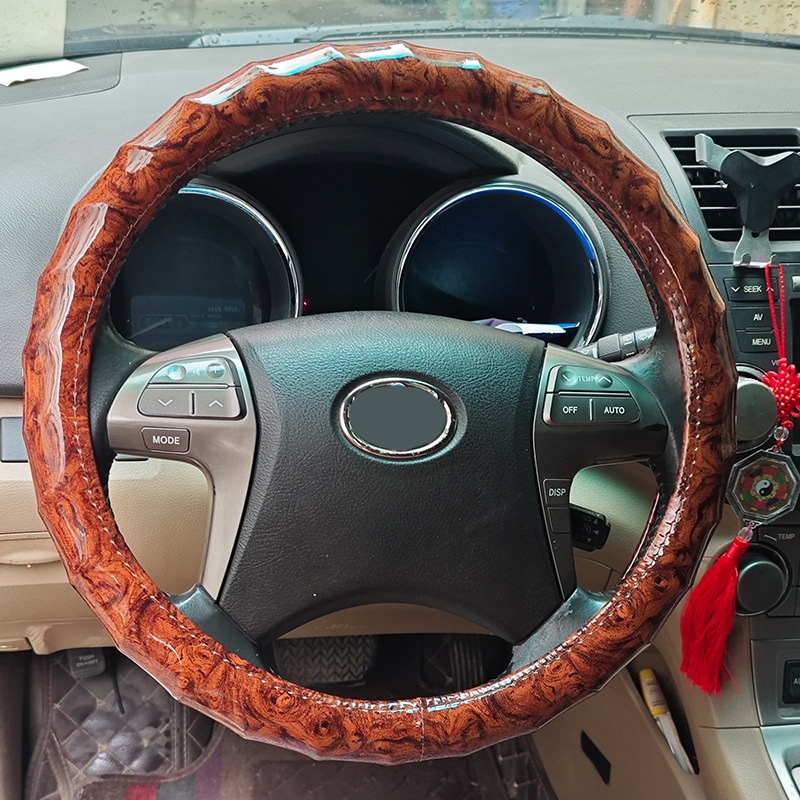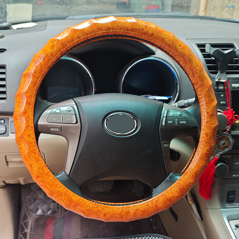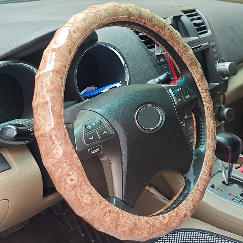 국경 간 스티어링 휠 커버 복숭아 우드 그레인 자동차 핸들 커버 사계절 유니버설 미끄럼 방지 자동차 내부 용품 스티어링 휠 커버