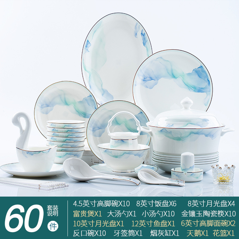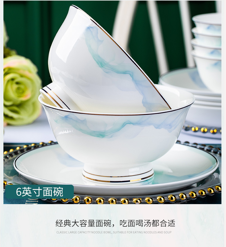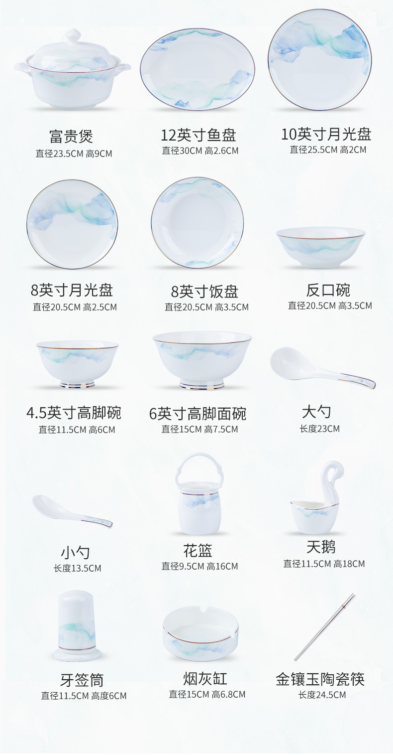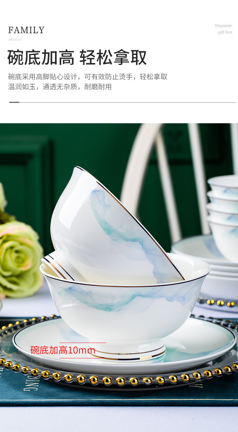 Jingdezhen 하이 엔드 뼈 중국 식기 가정용 세라믹 그릇 밥 그릇 요리 세트 미묘한 간단한 요리 도매 선물스토어 가기