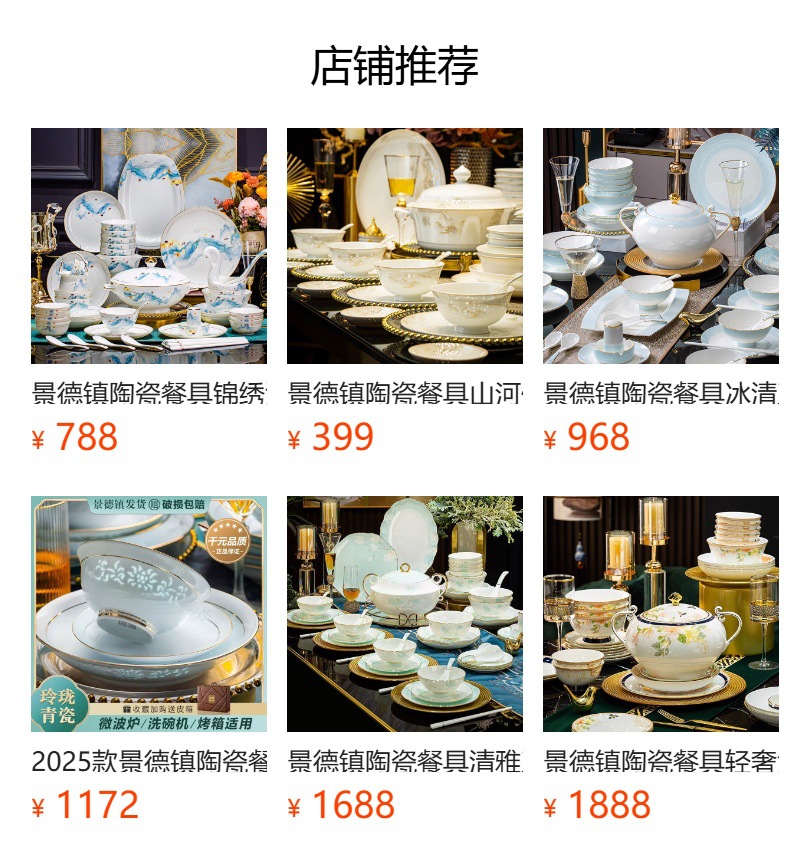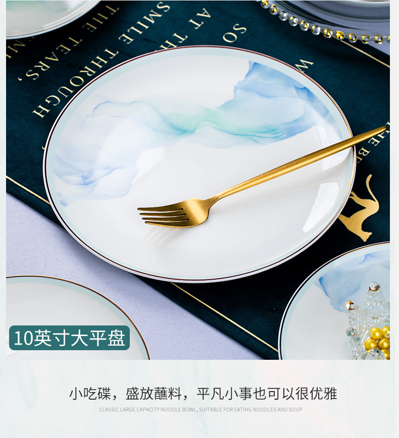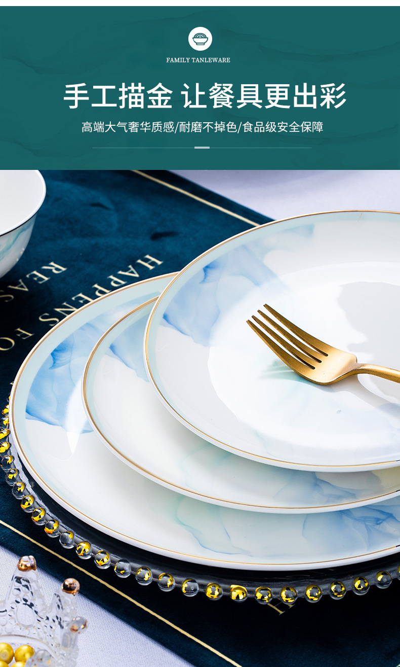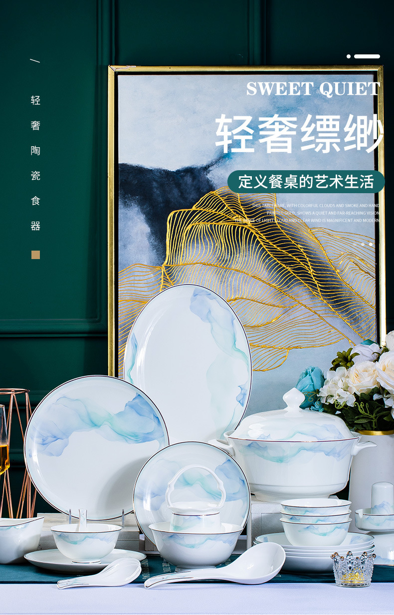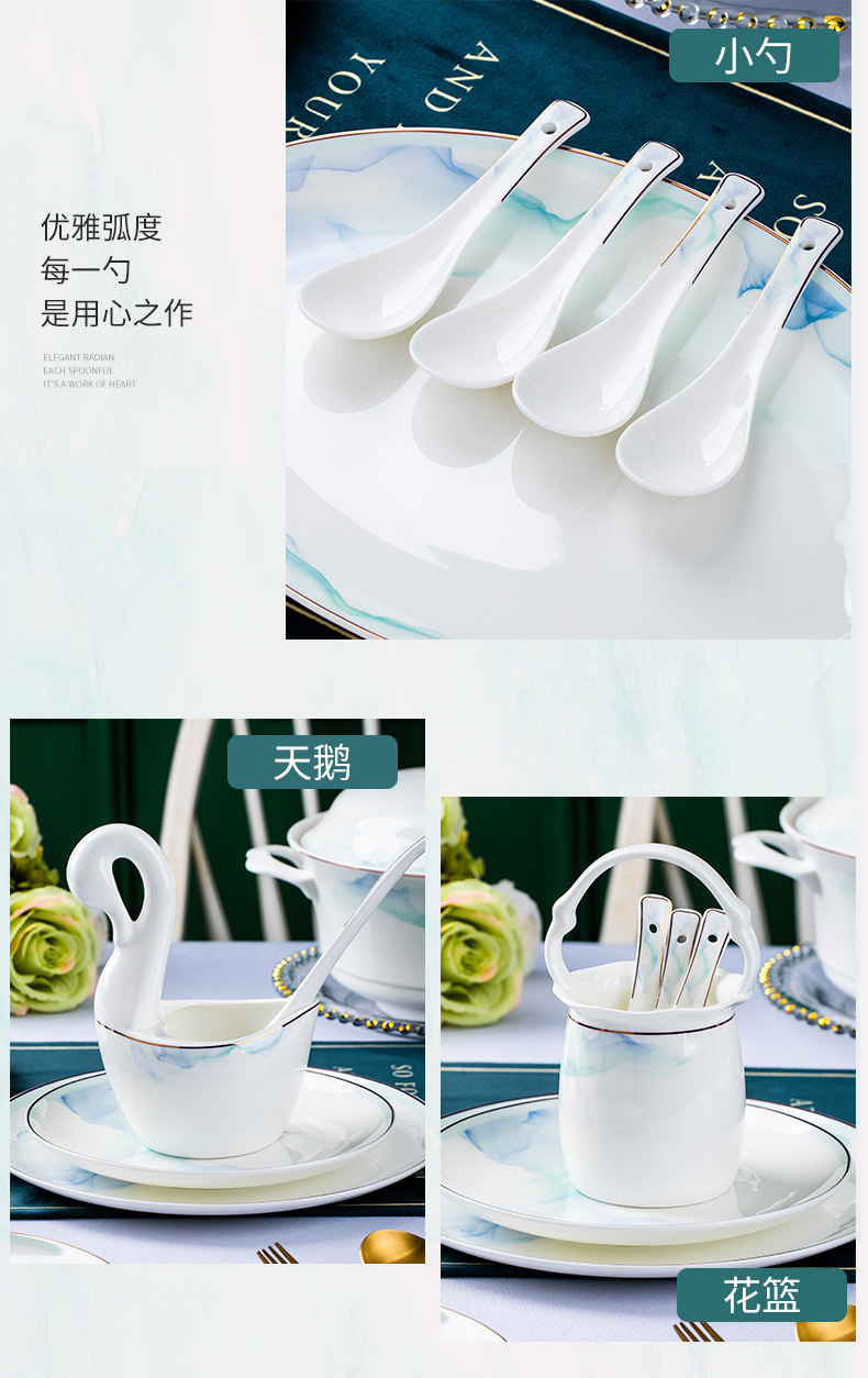 Jingdezhen 하이 엔드 뼈 중국 식기 가정용 세라믹 그릇 밥 그릇 요리 세트 미묘한 간단한 요리 도매 선물스토어 가기