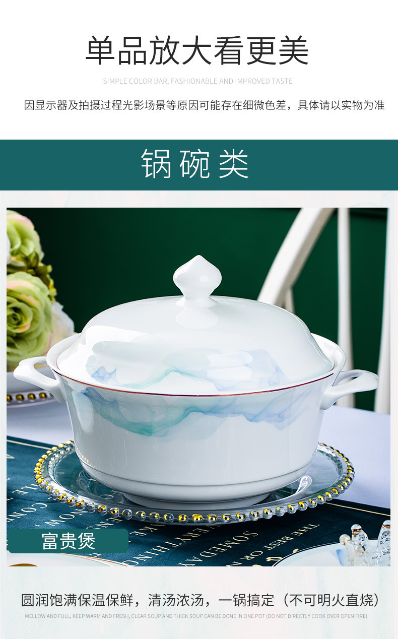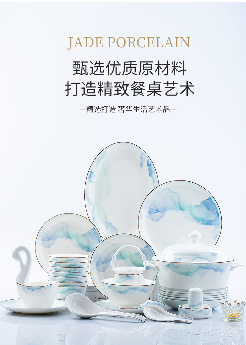 Jingdezhen 하이 엔드 뼈 중국 식기 가정용 세라믹 그릇 밥 그릇 요리 세트 미묘한 간단한 요리 도매 선물